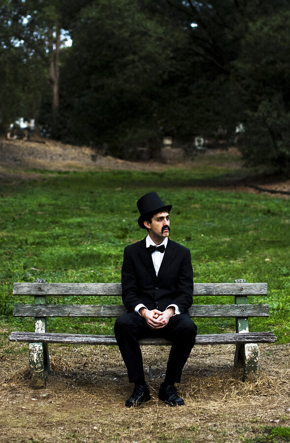 A Sorrowful Man In Mourning Dress Decides To Kill Some Time By Sitting On A Cemetery Park Bench