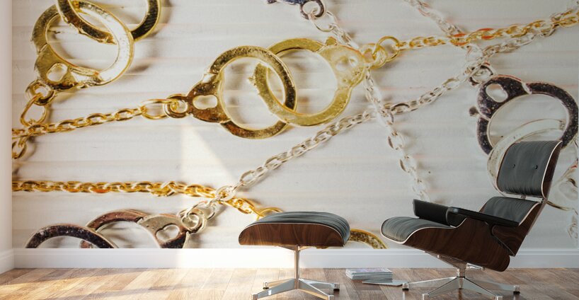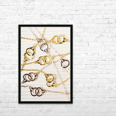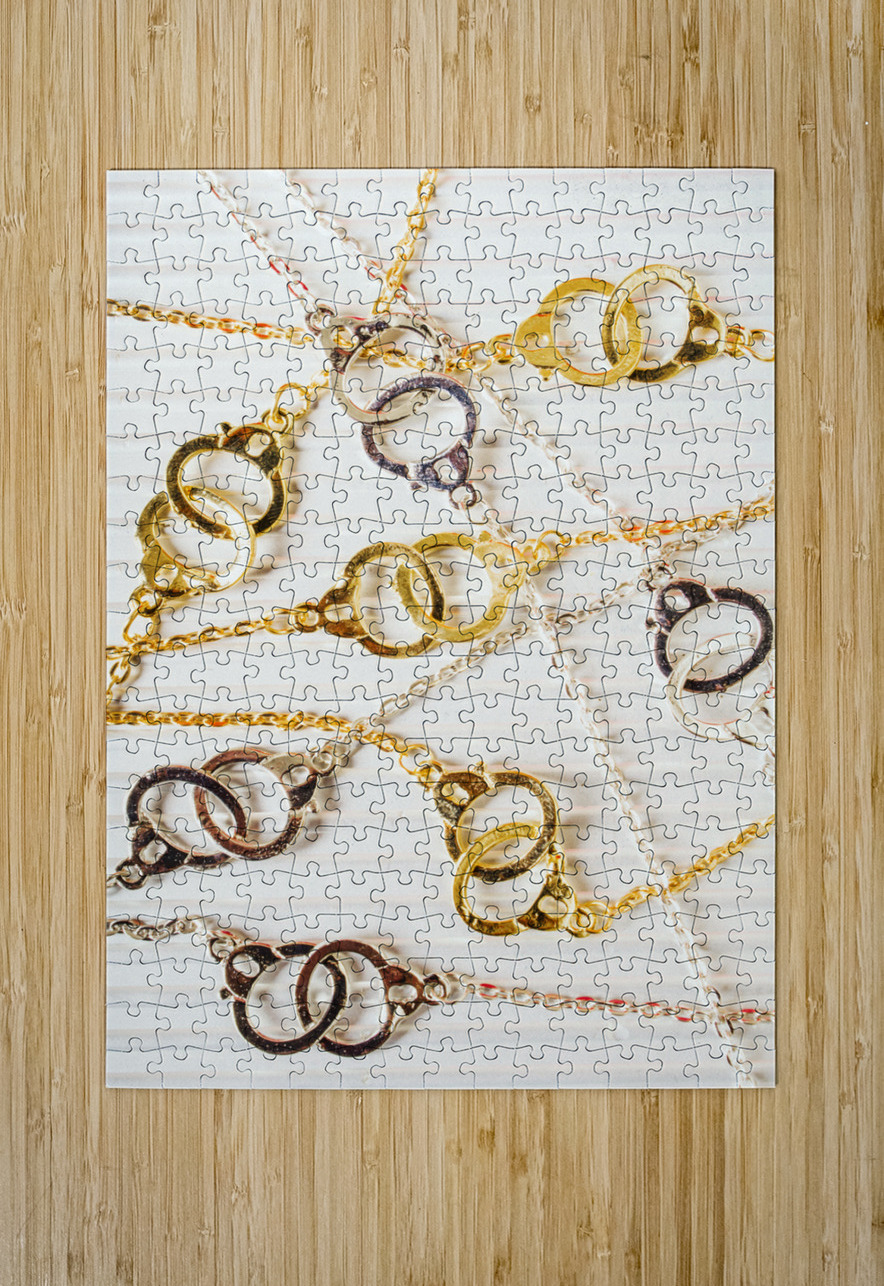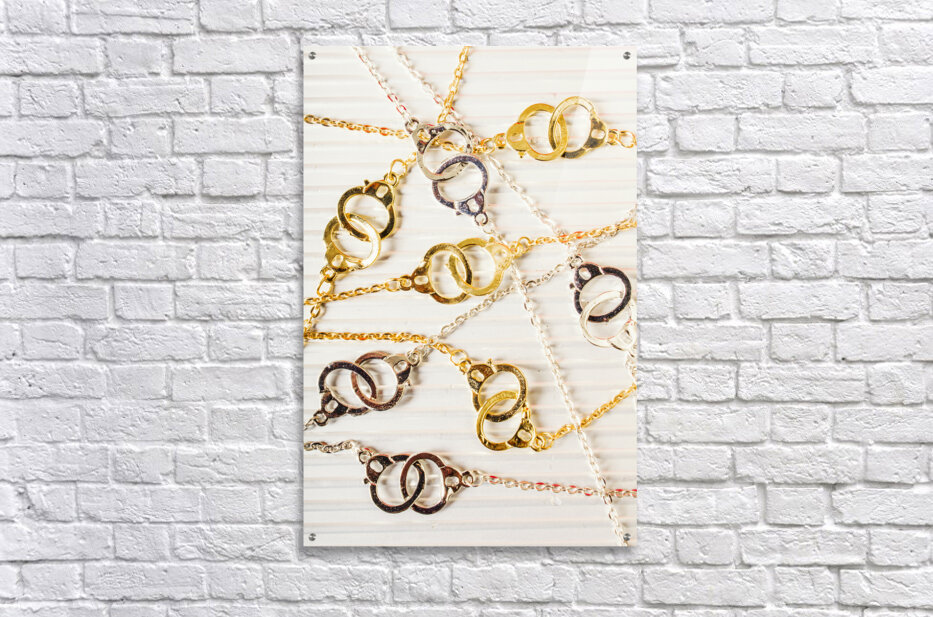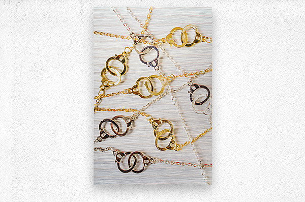 Silver and gold handcuffs jewelry bracelets. Bound by love