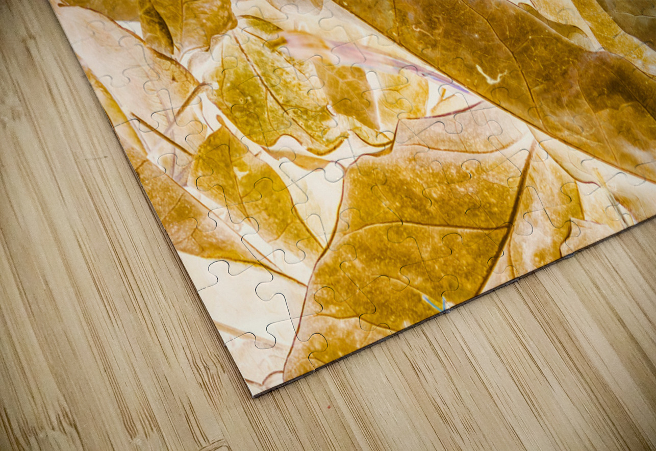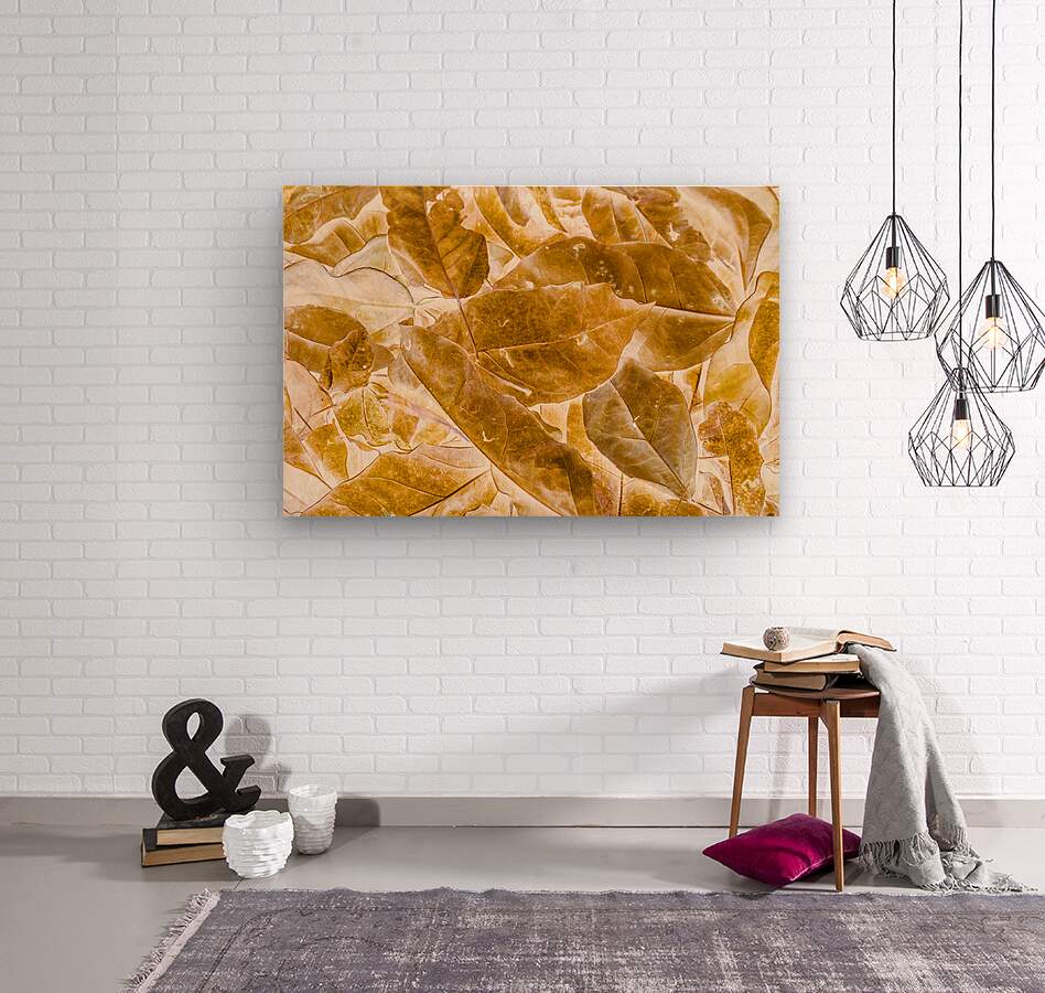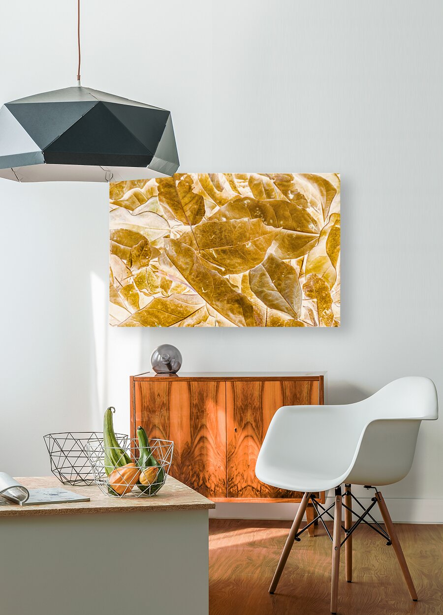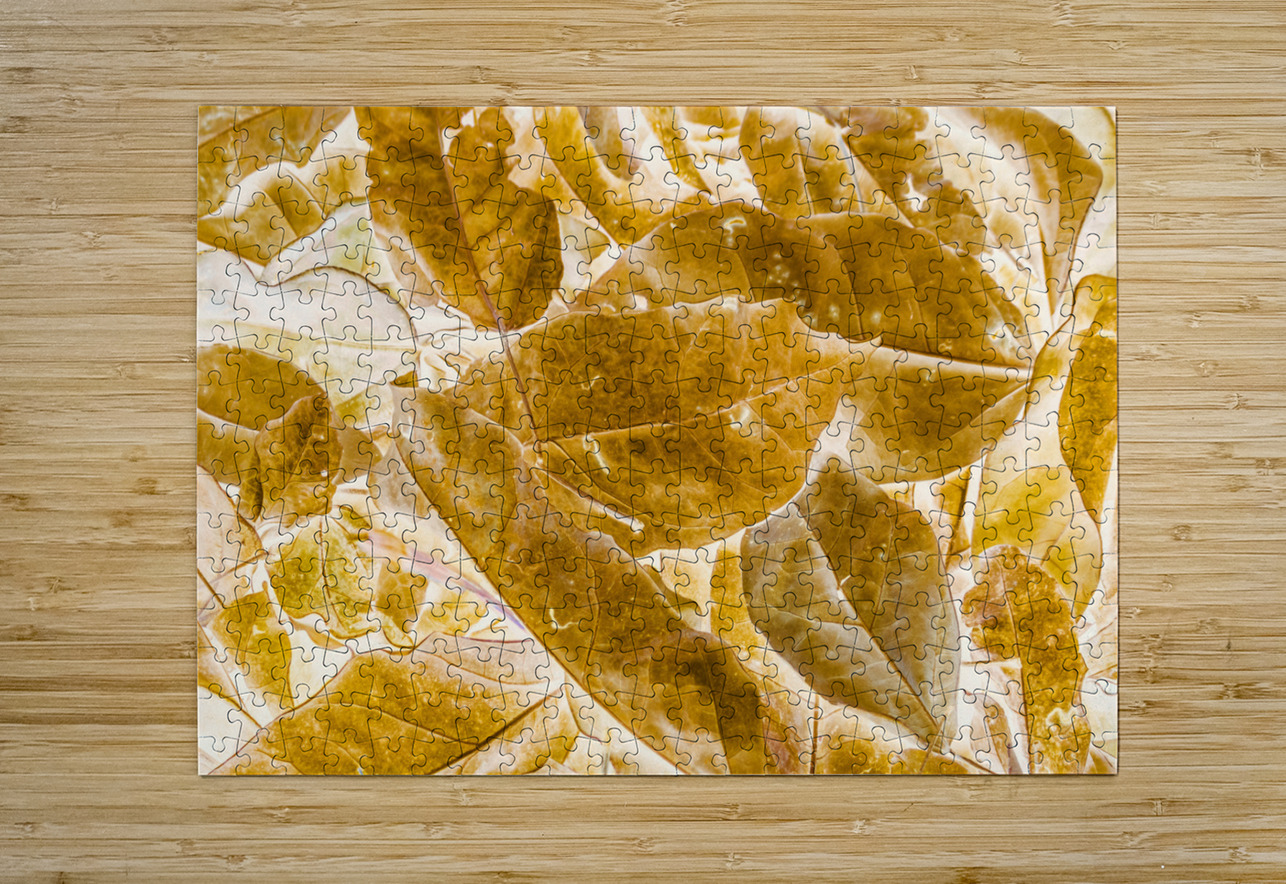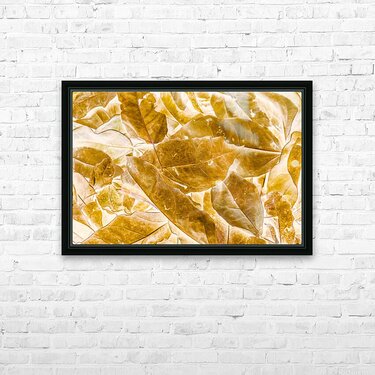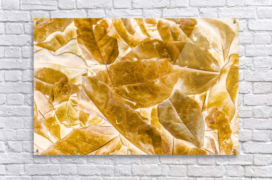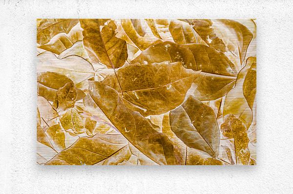Golden brown nature artwork on a forest floor in wild inversion. Seasonal gold