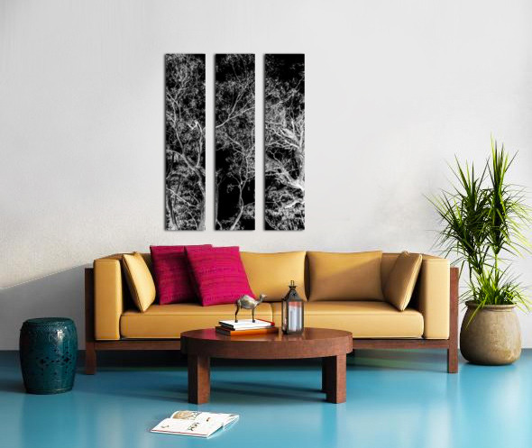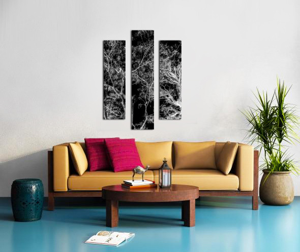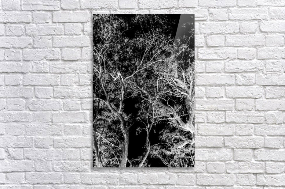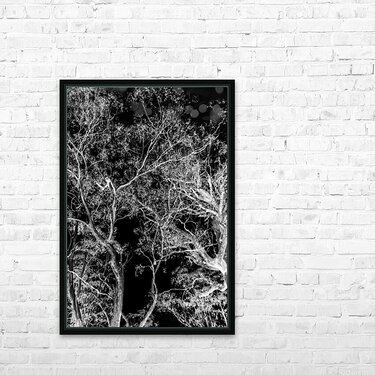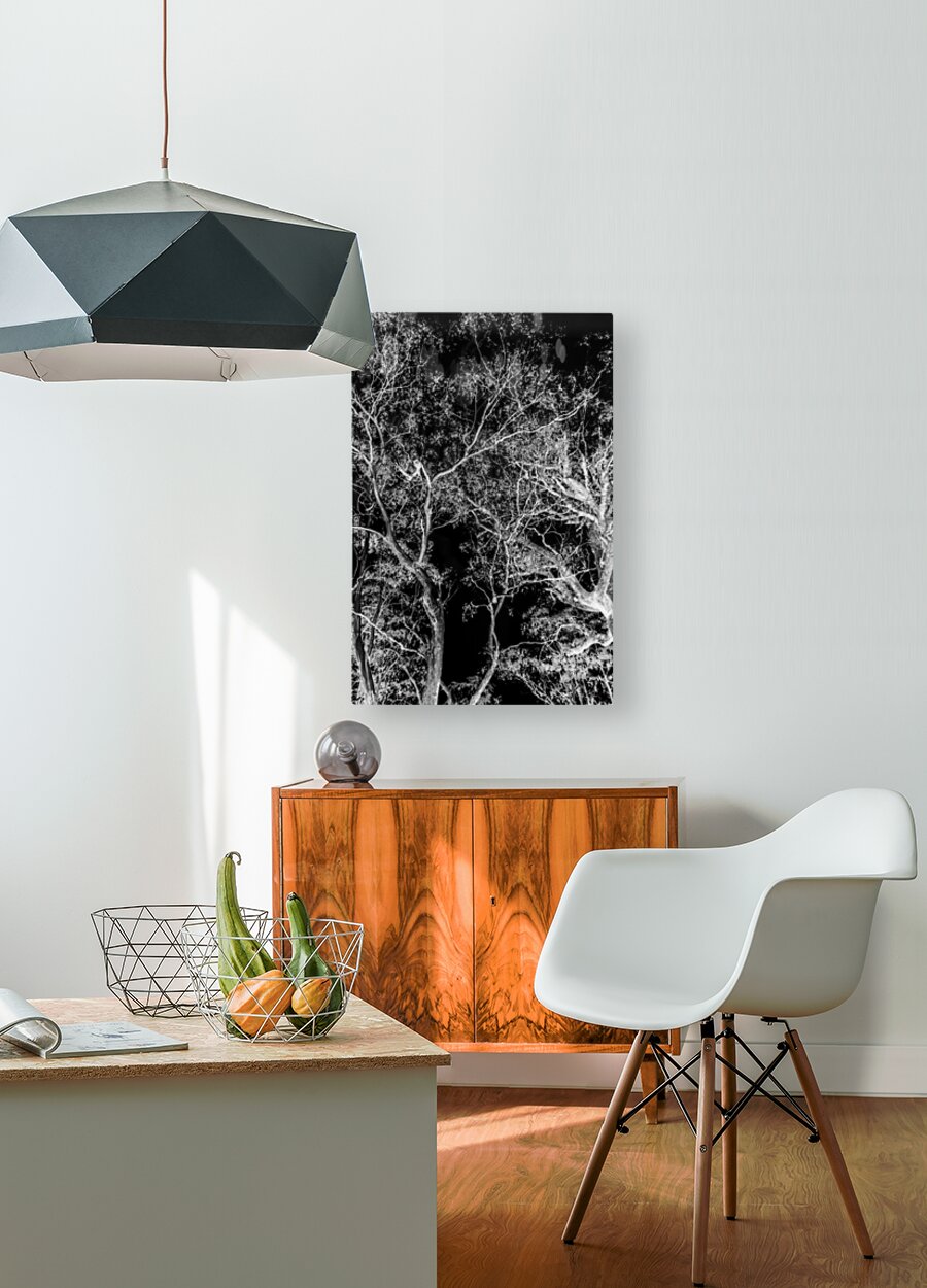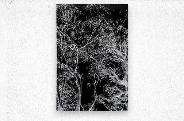 Modern nature abstraction on a tall branched tree dream in inverse black and white