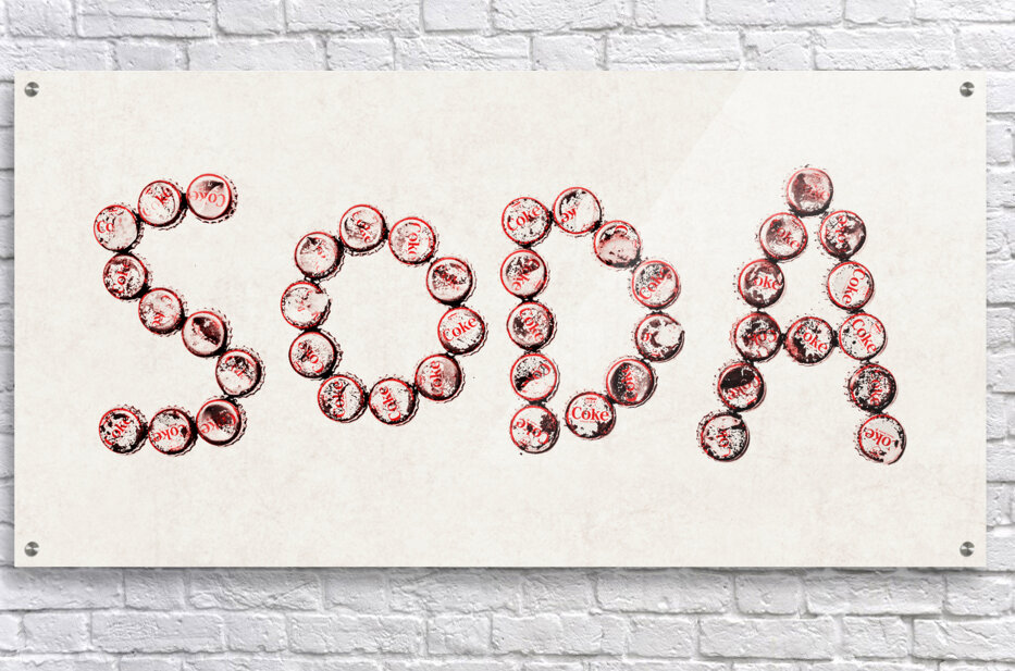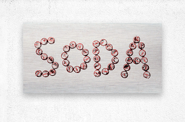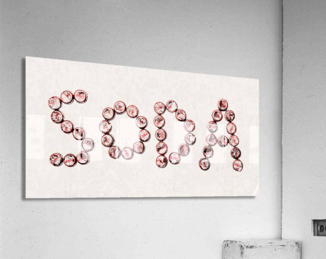 Diner décor sign in a soft drinks spelling in vintage bottle caps. Pop top soda