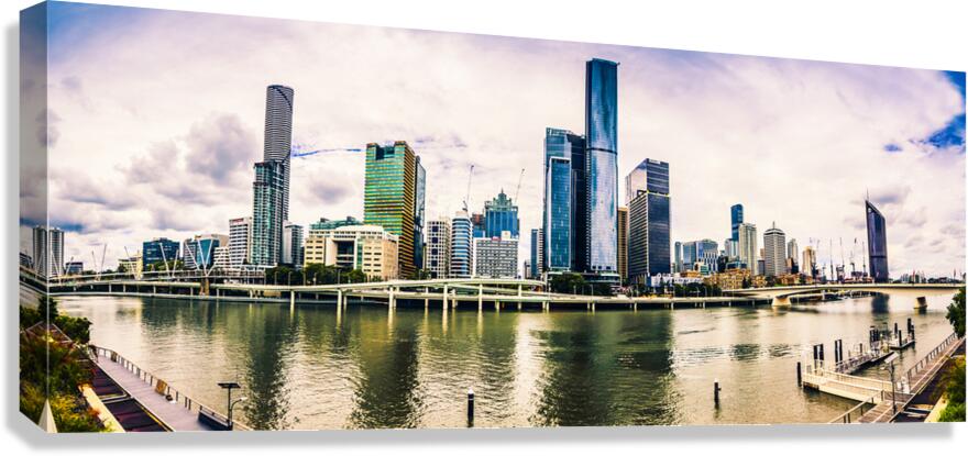Wide open landscape art of urban harmonics with buildings bridges and street architecture in panoramic presentation. Captured: Brisbane CBD Queensland Australia