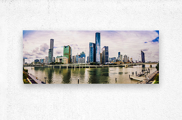 Wide open landscape art of urban harmonics with buildings bridges and street architecture in panoramic presentation. Captured: Brisbane CBD Queensland...[+]