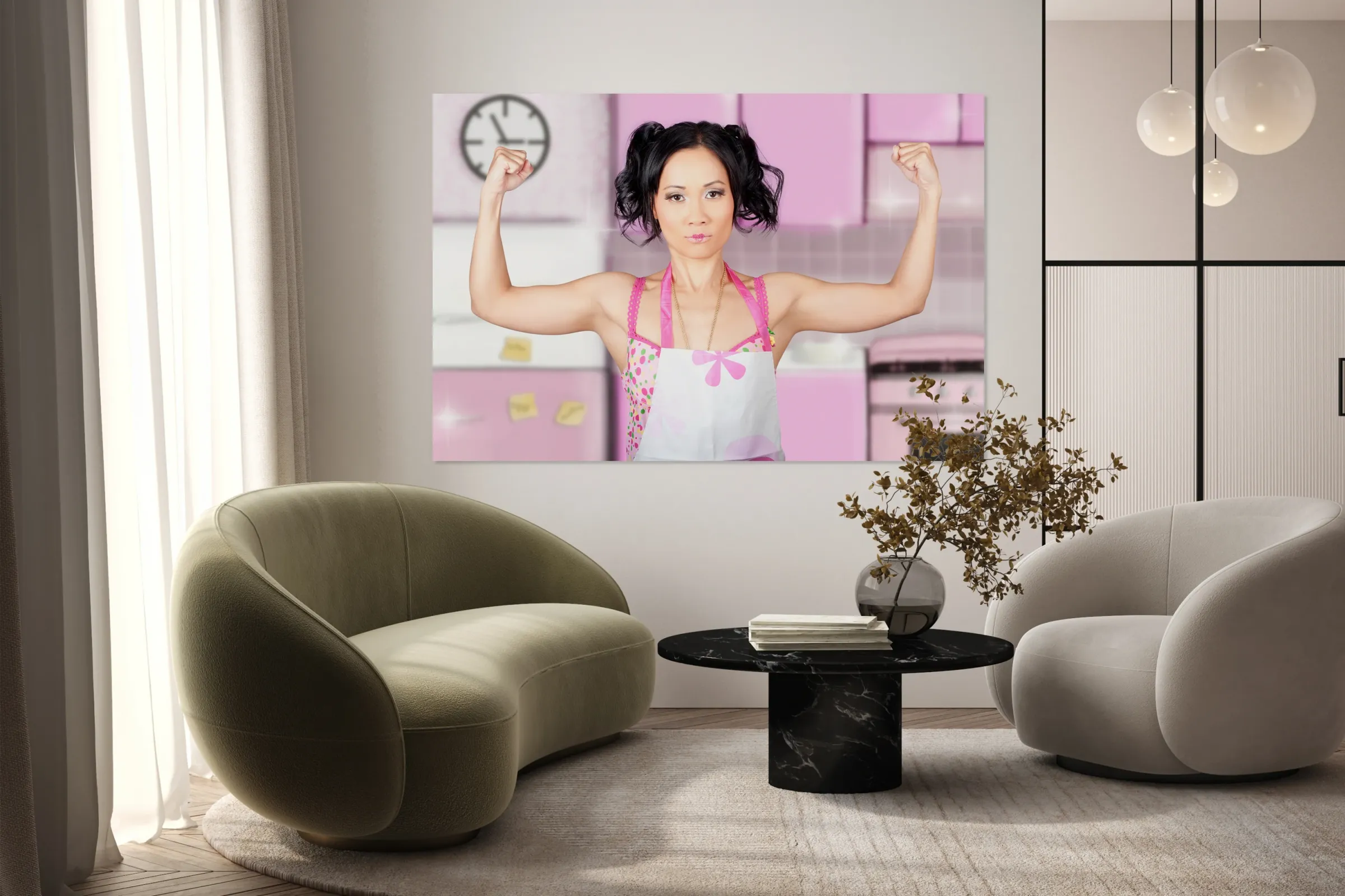 ABOUT THIS ARTWORK: FUNNY CLEANING PINUP WOMAN WITH CLEAN STRENGTH