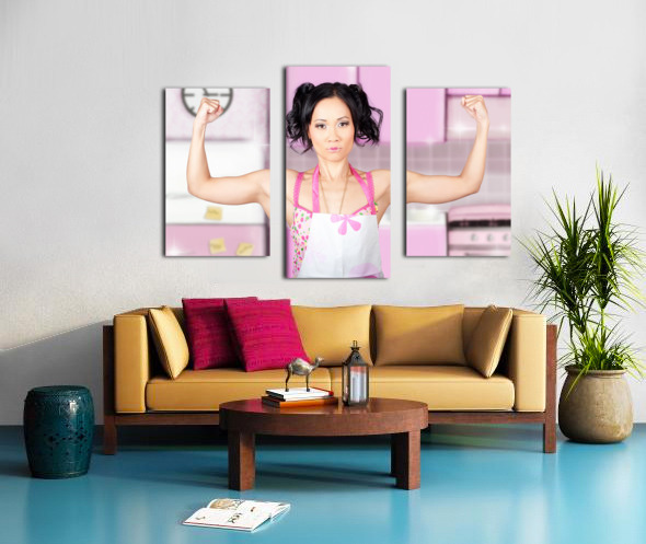 Get this artwork "Funny cleaning pinup woman with clean strength" in a framed print.