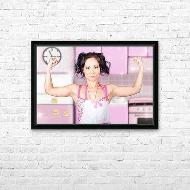 Funny cleaning pinup woman with clean strength Picture Frame Printing