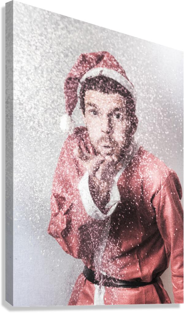 Abstract blurred portrait of Santas little helper blowing magical snow dust in a Christmas miracle conceptual