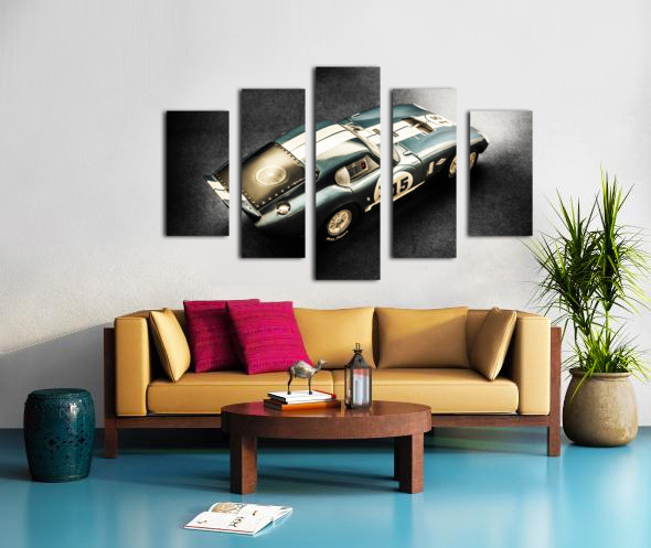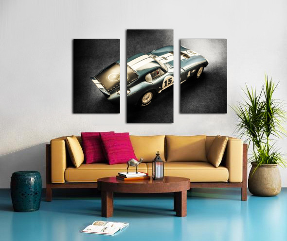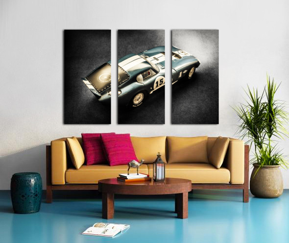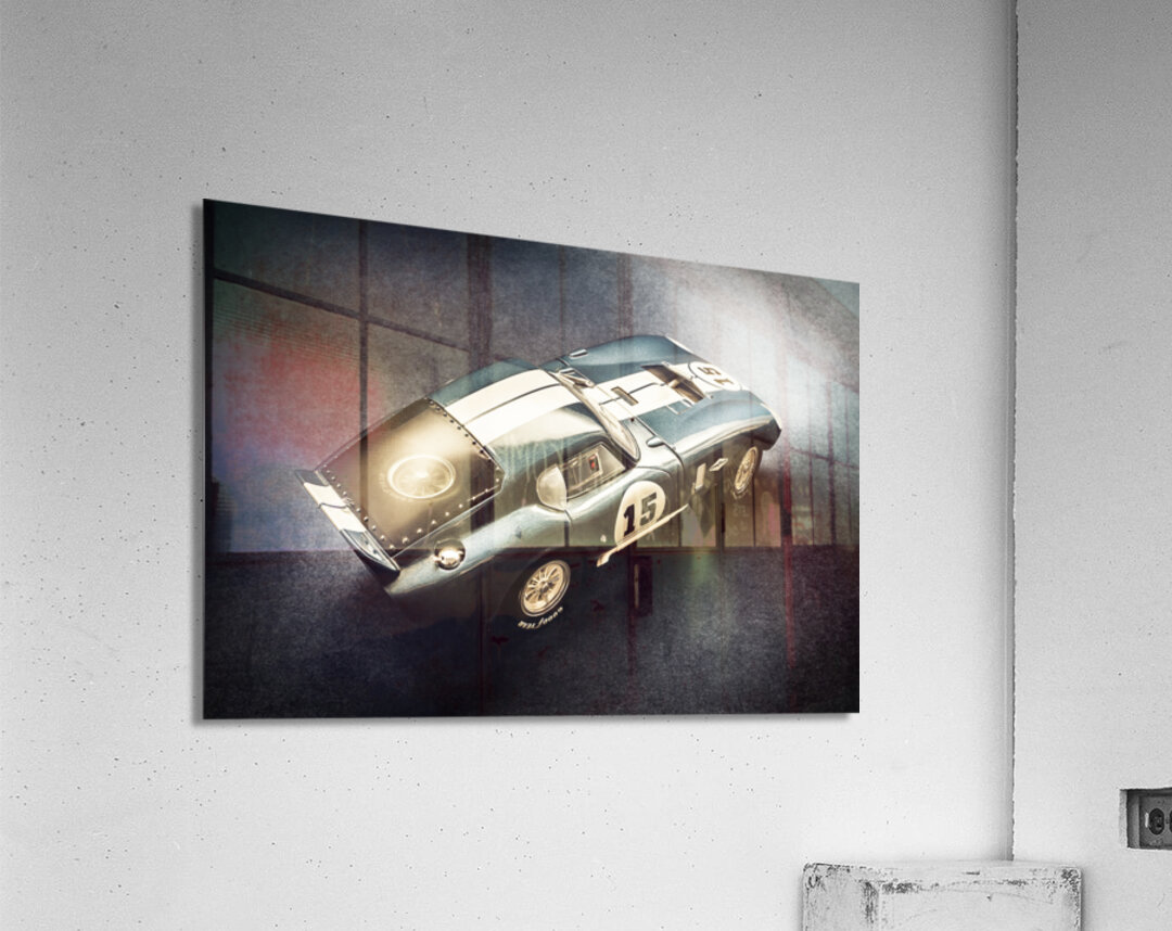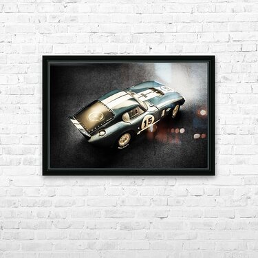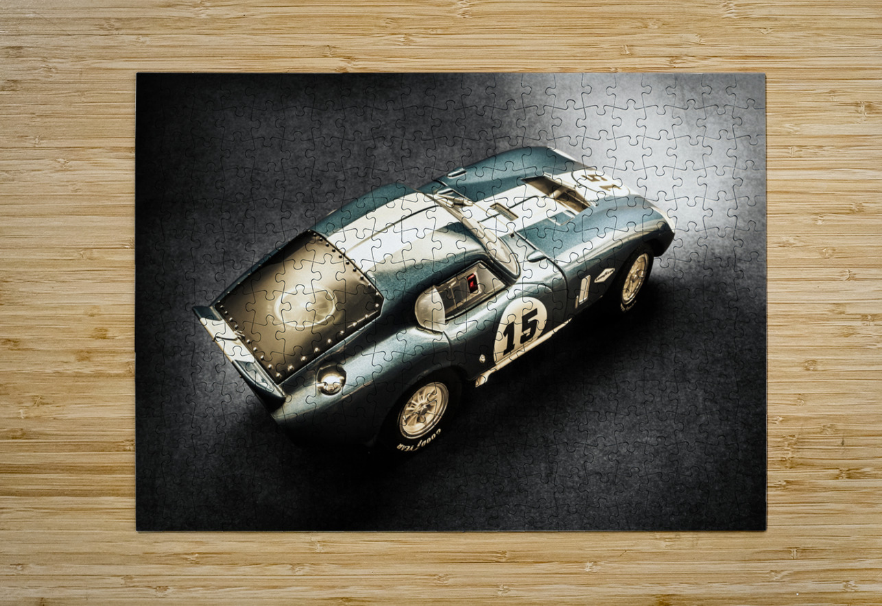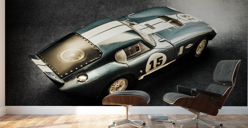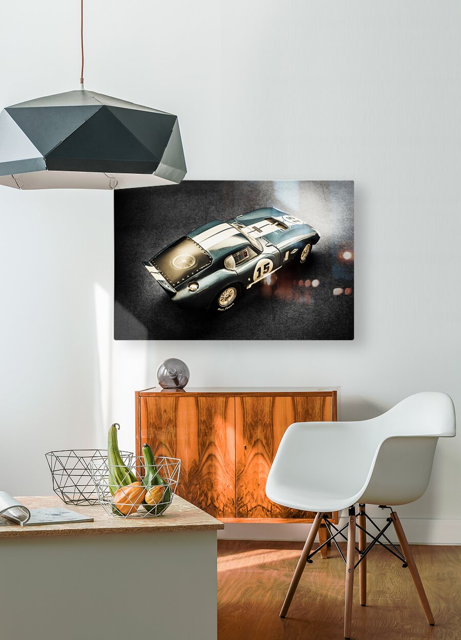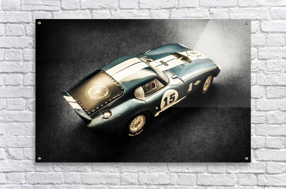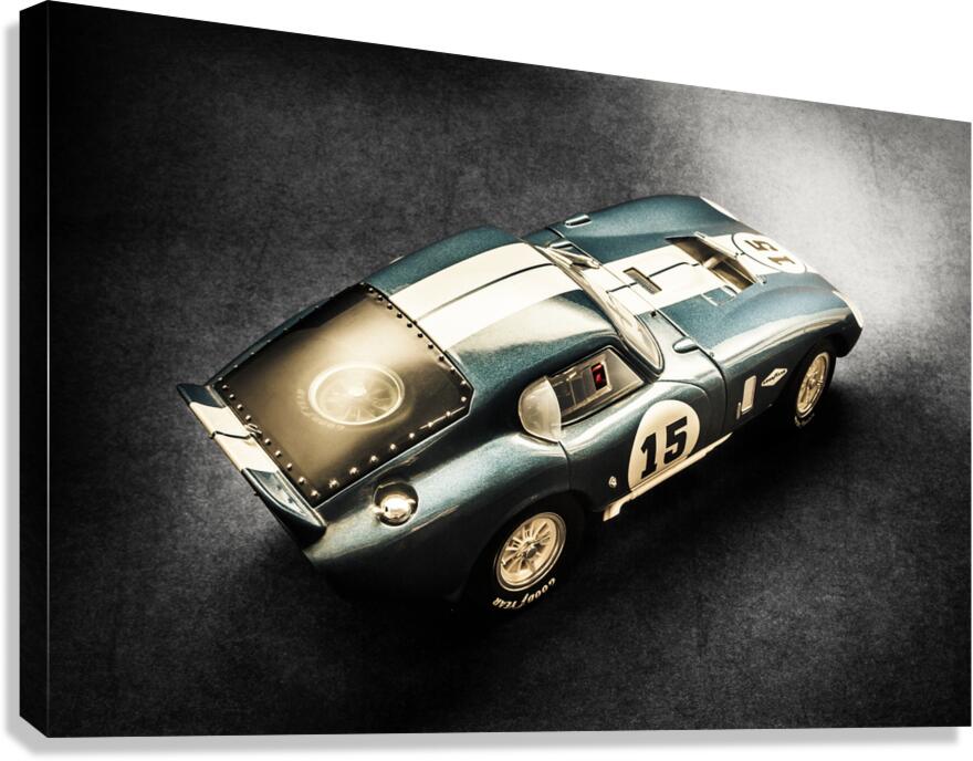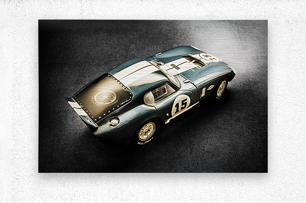 Elevated automotive artwork on a speedster of classic car nostaligia with a 65 Shelby Cobra Daytona in midnight blue
