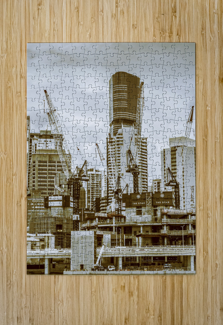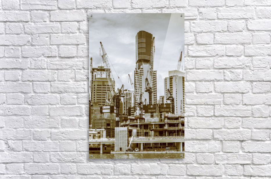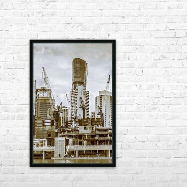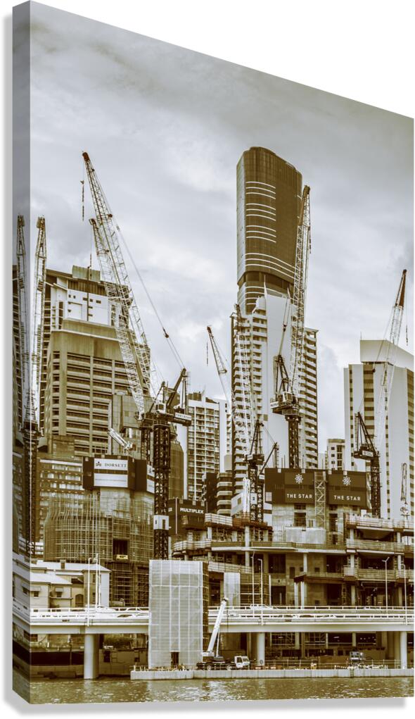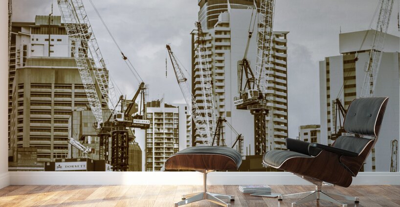 Busy facade in constructing cities with cranes building below and above. Captured: Brisbane CBD Queensland Australia