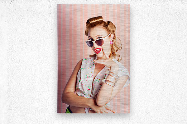 Glamor Retro 1960s Blond Woman With Immaculately Coiffed Hair And Sunglasses Peering Over The Top With Her Finger To Cheek In A Fashion Idea Concept