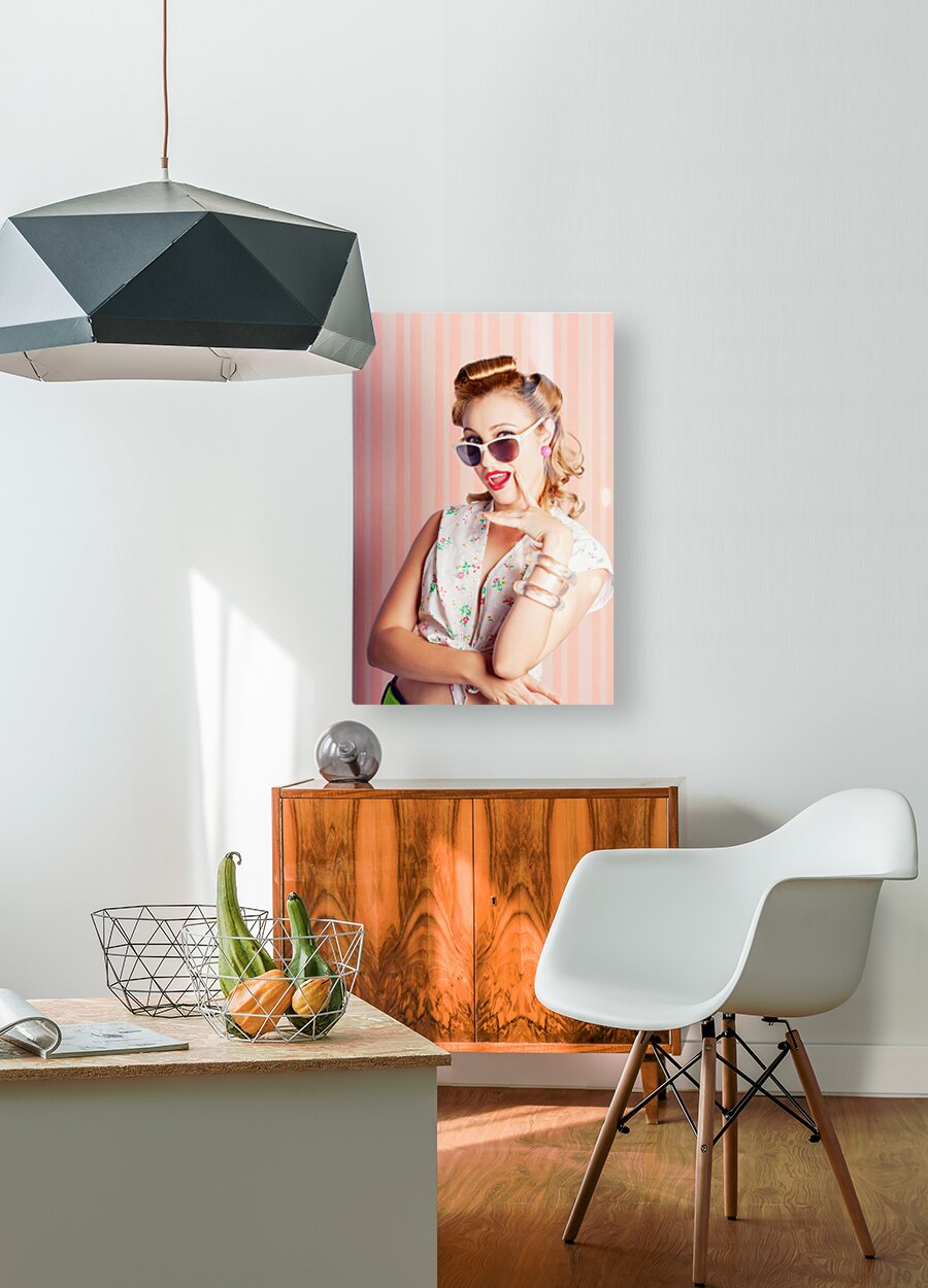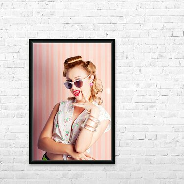 Glamorous Retro Blonde Girl Thinking Fashion Ideas Frame print