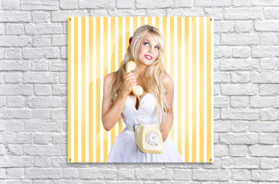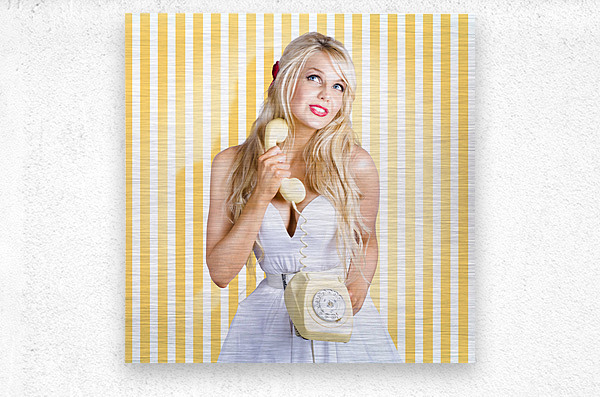 ABOUT THIS ARTWORK: FEMALE MODEL WITH PHONE IN CLASSIC RETRO FASHION