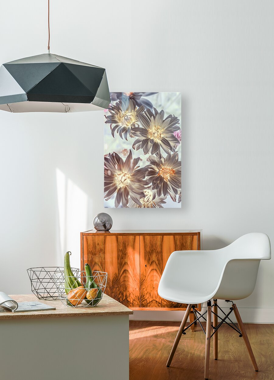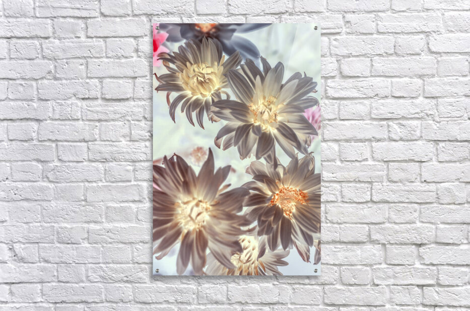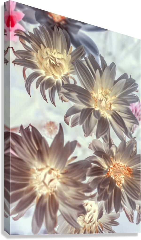 Nature fine art photograph on a unusual scene of infrared flower photography with glowing Chrysanthemums in abstract