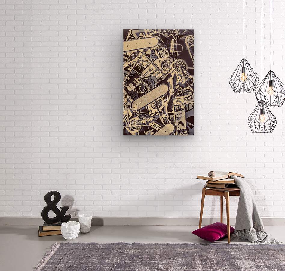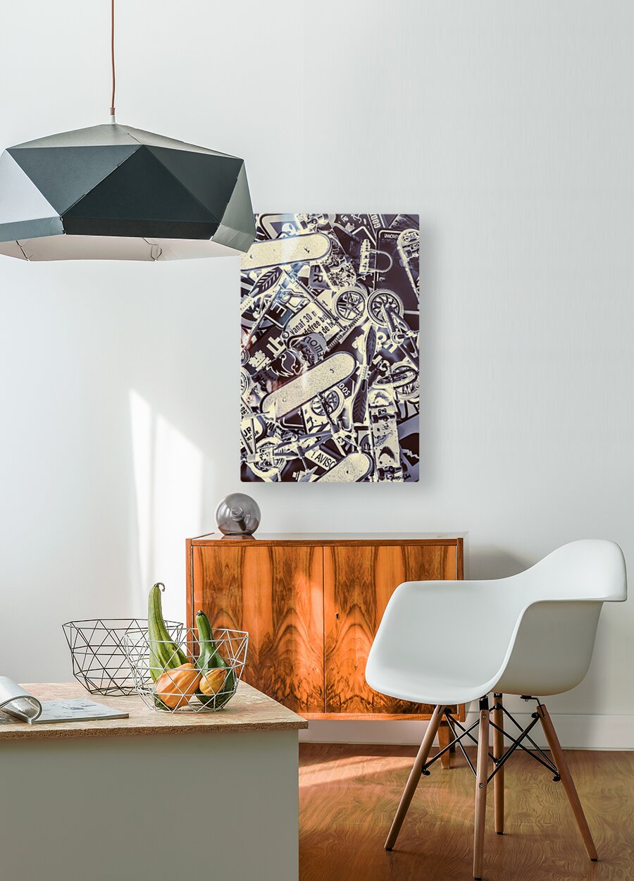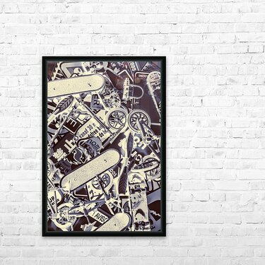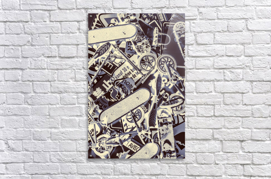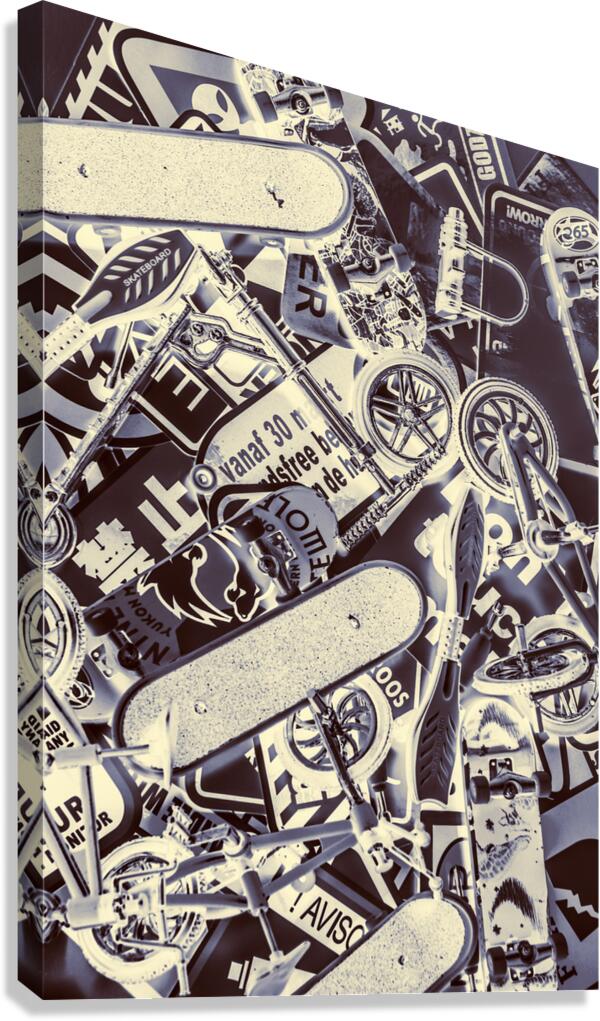 City chaos in a inverted mad urban abstract of skateboarding decks bmx bicycles and push scooters. edis pilF