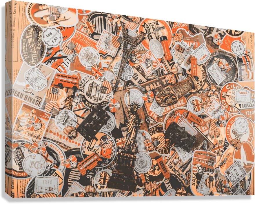 Antique scene in decorative travel with landmarks strewn to destinations abstract