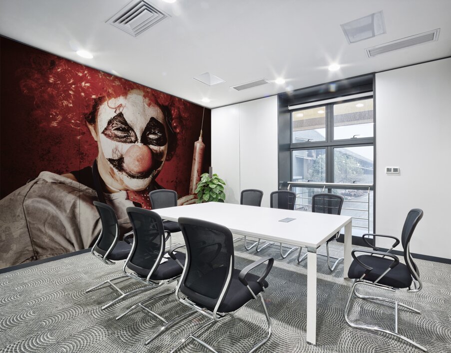 ABOUT THIS ARTWORK: CRAZY MEDICAL CLOWN HOLDING OVERSIZED SYRINGE