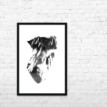 Fine art modern design on a black and white subject subjected to introspective abstraction. The inner core