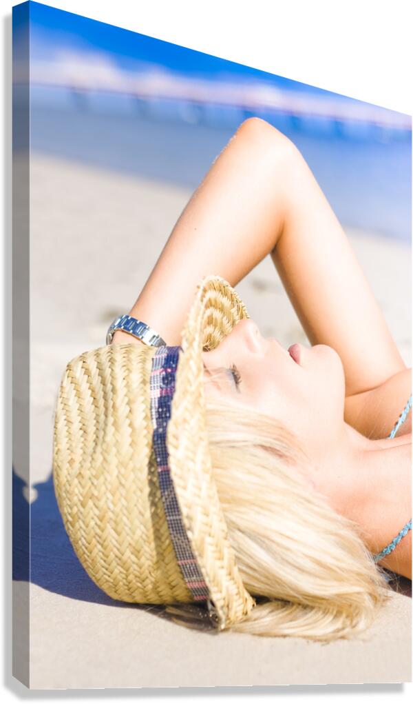 Get this artwork "Pretty female at beach" in a framed print.