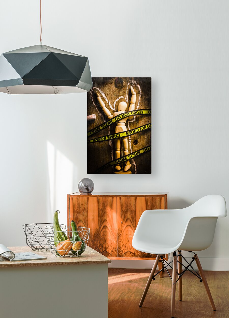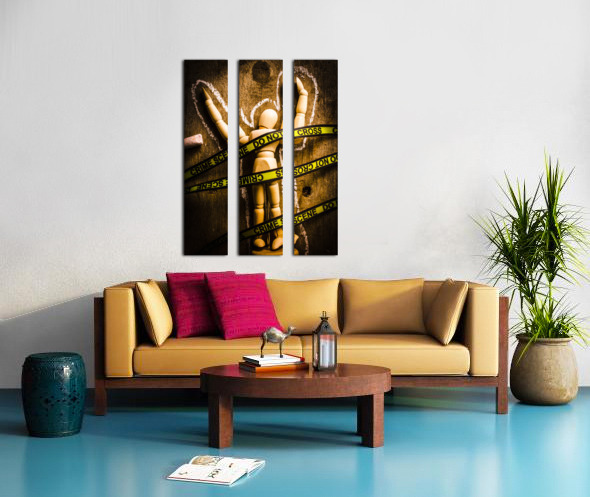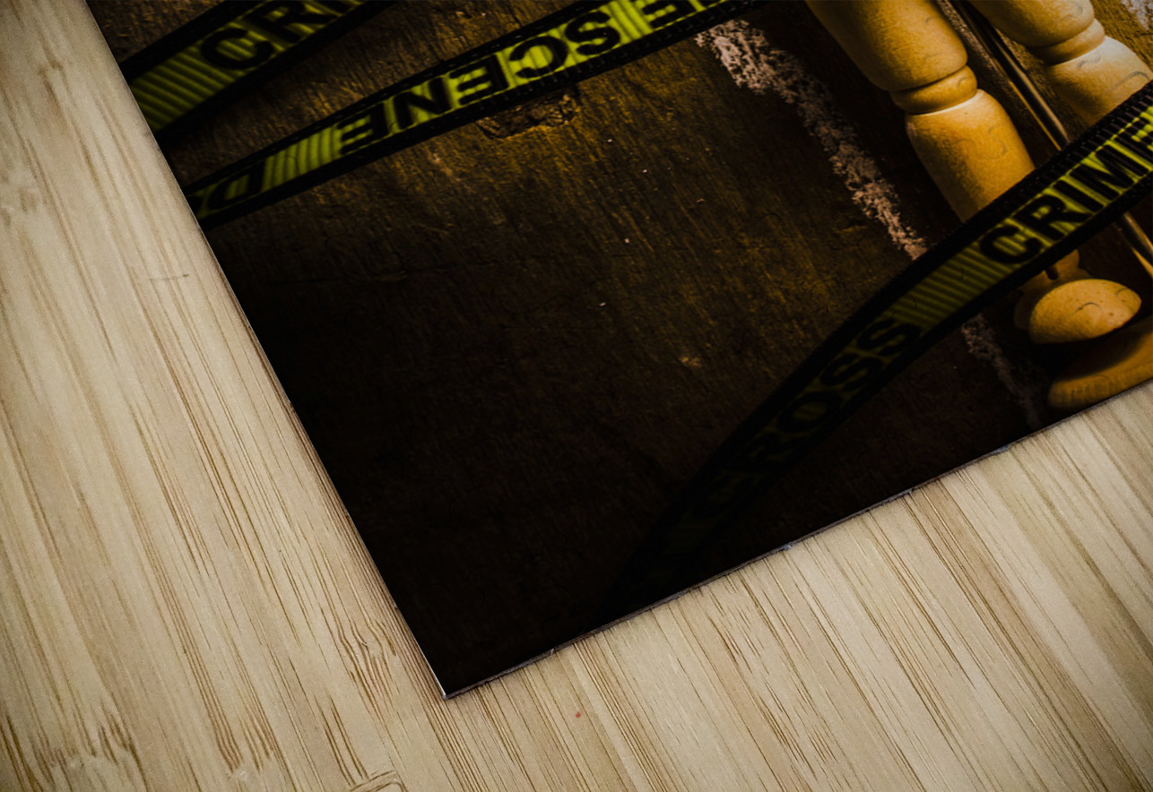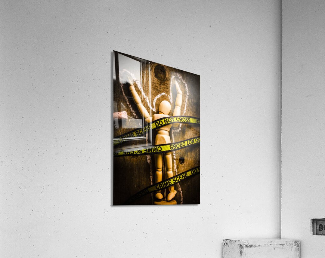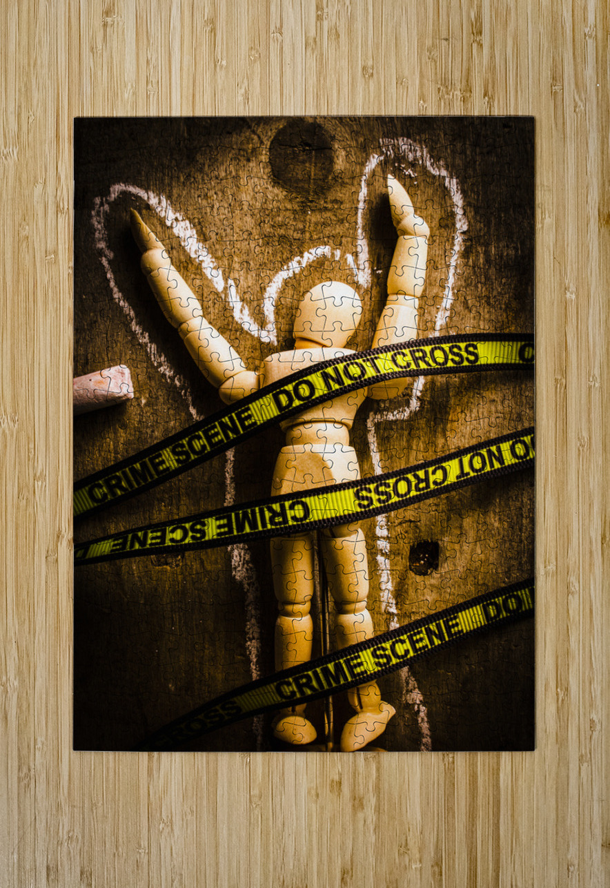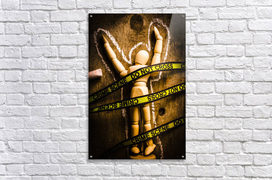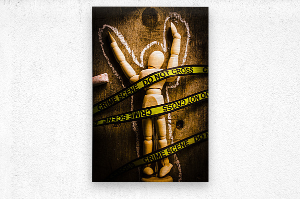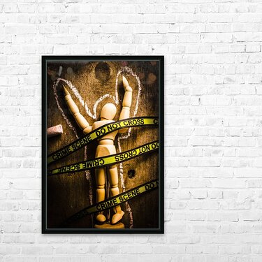 Forensic investigation scene with a human anatomy model lain to a tracing of tragedy