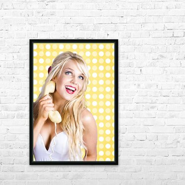 Retro phone beauty with glamour hair and makeup Picture Frame Printing