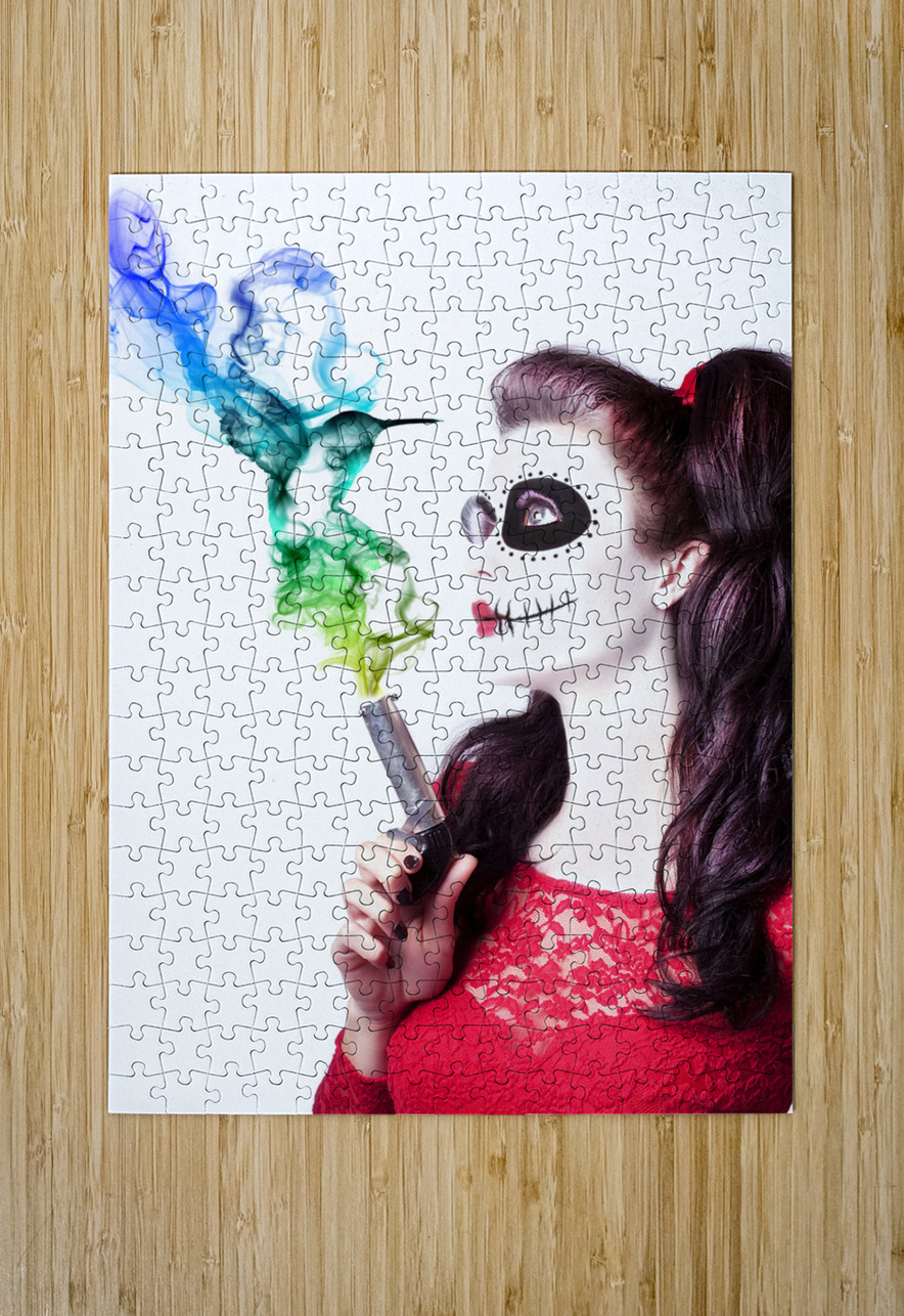 Sugar skull girl blowing on smoking gun Jorgo Puzzle printing