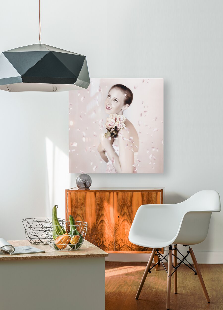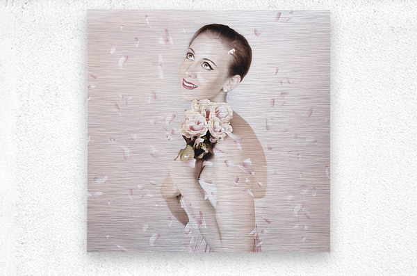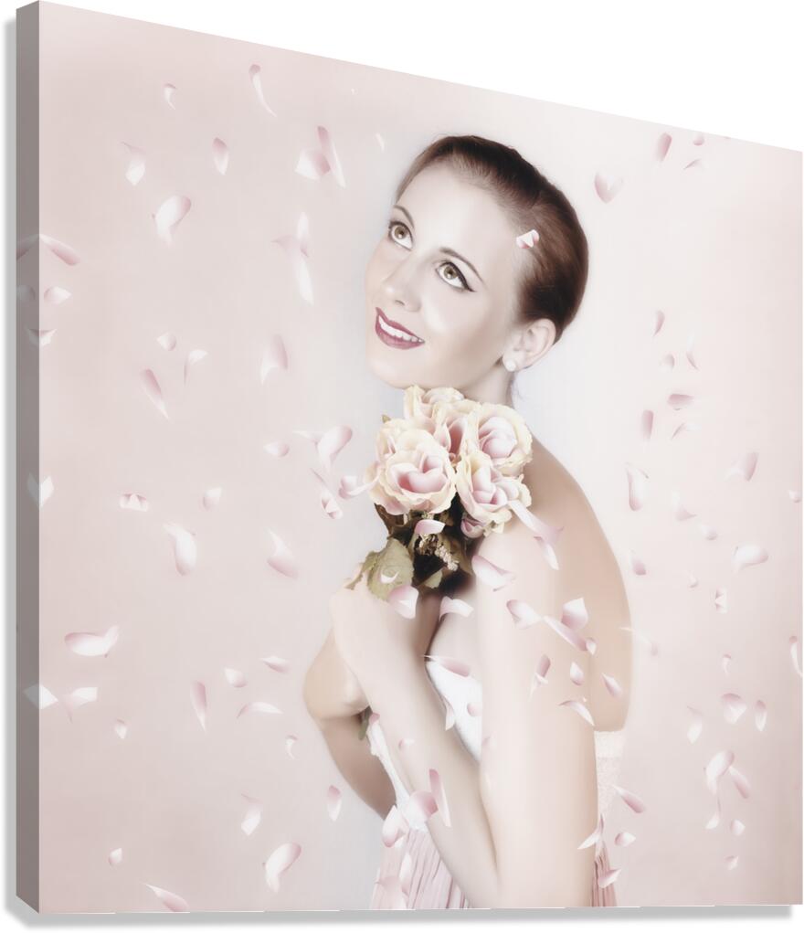 ABOUT THIS ARTWORK: BEAUTIFUL WOMAN HOLDING FLOWERS AT VINTAGE WEDDING