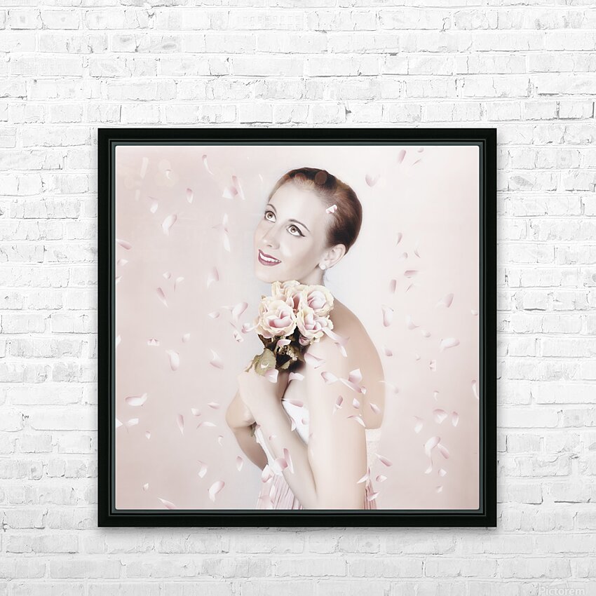 Beautiful Woman Holding Flowers At Vintage Wedding Picture Frame Printing