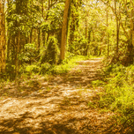 Landscaped harmony with peaceful woodland way with road clearing in country splendour. Amity North Stradbroke Island Queensland Australia