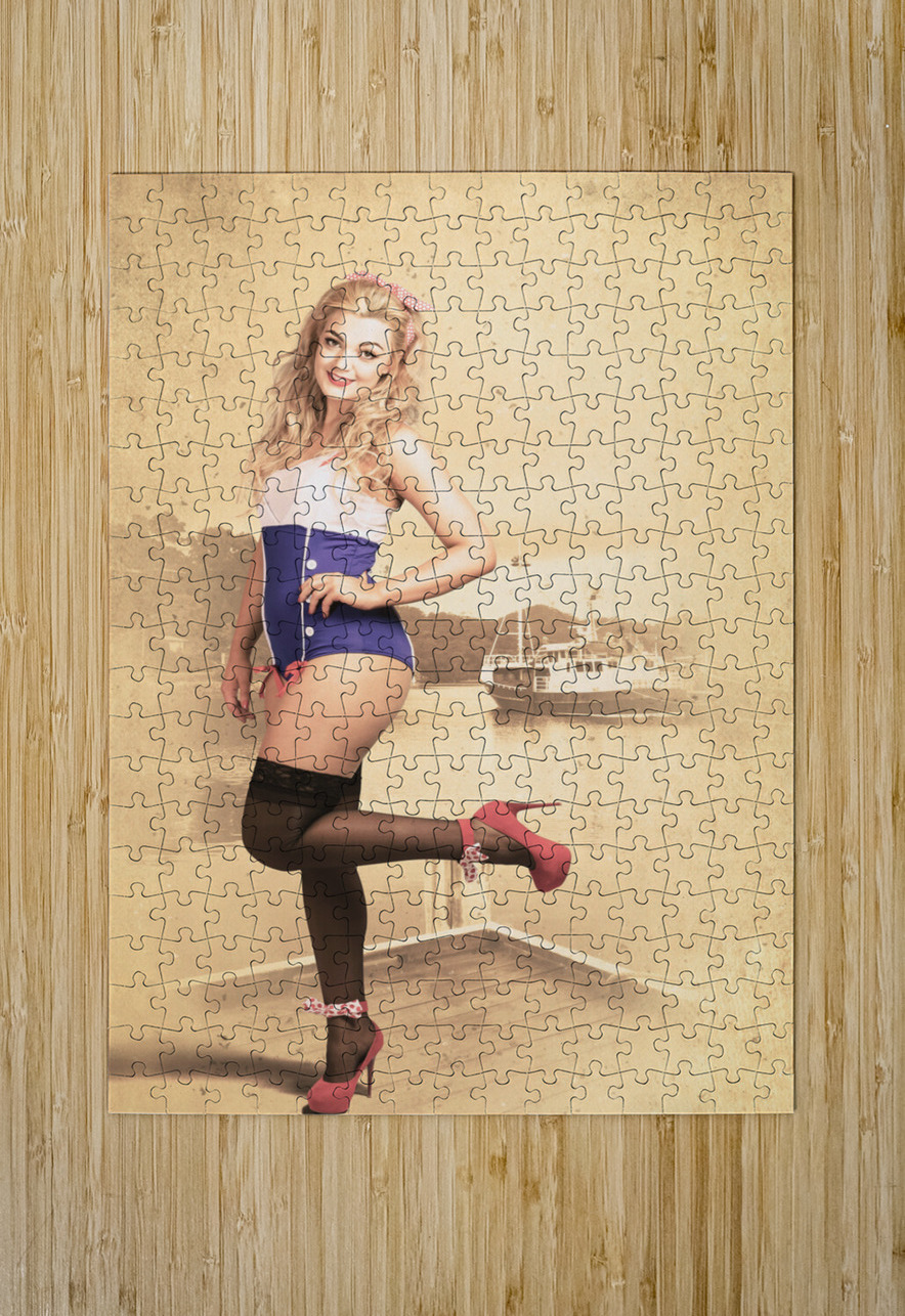 Happy navy pinup girl in retro fashion accessories Jorgo Puzzle printing
