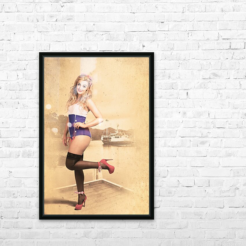 Happy navy pinup girl in retro fashion accessories Picture Frame Printing