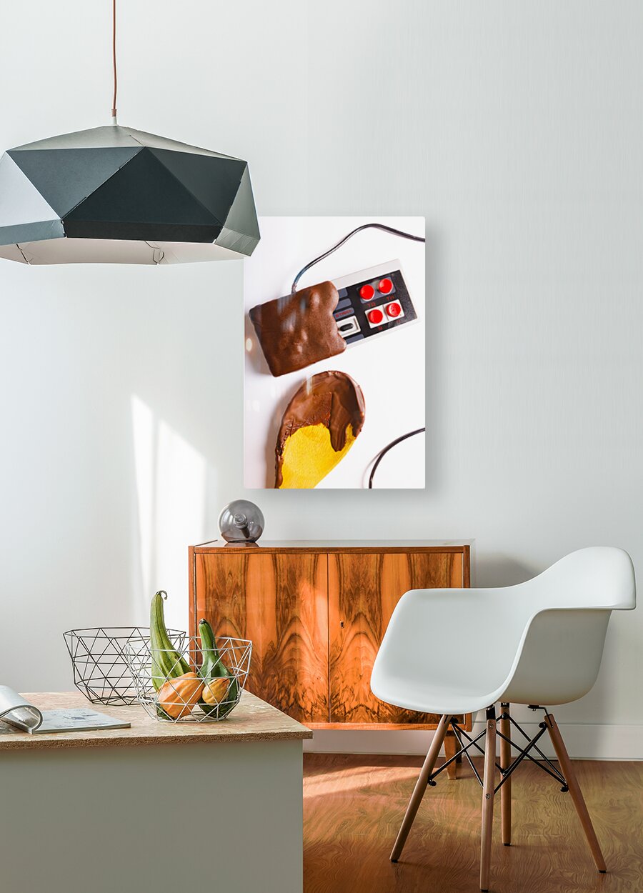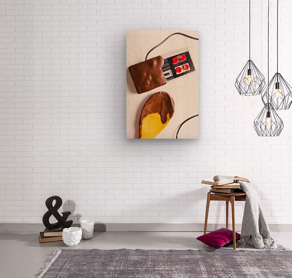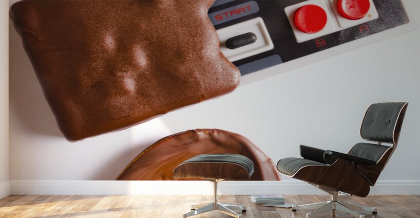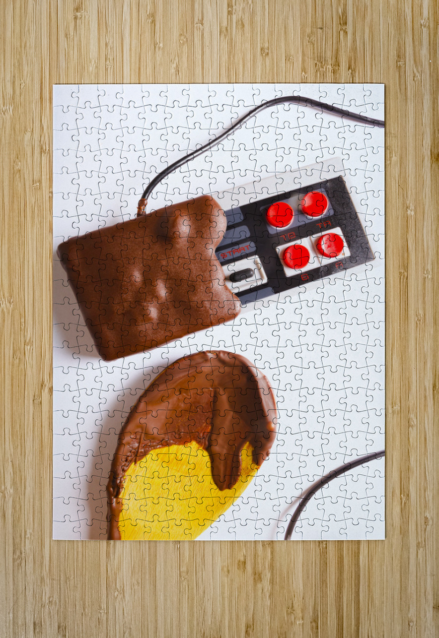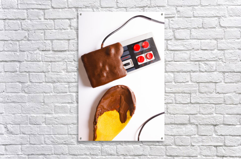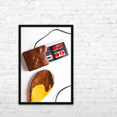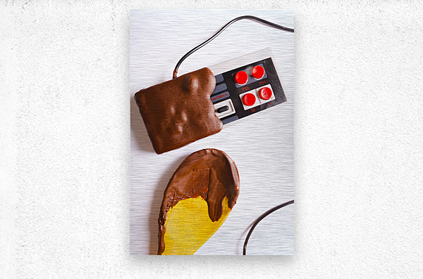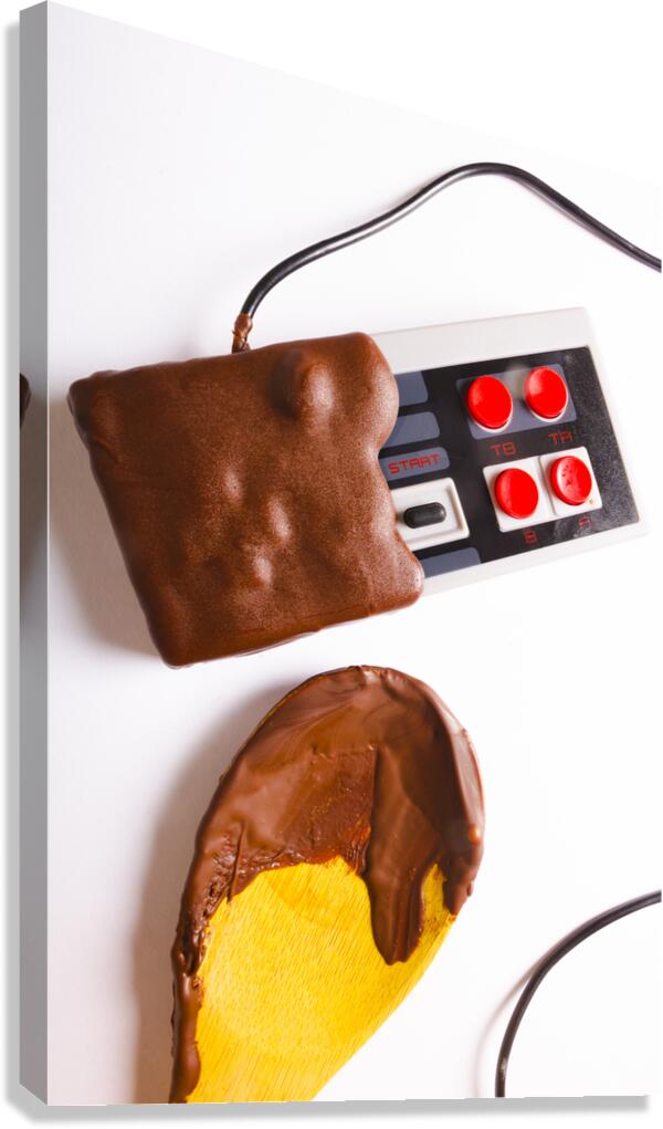 Retro arcade classics played out in a still life of sweet dipped gaming sweetness with chocolate joystuck