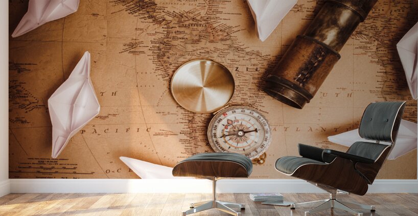Explorer desk with compass map and spyglass Jorgo Puzzle printing