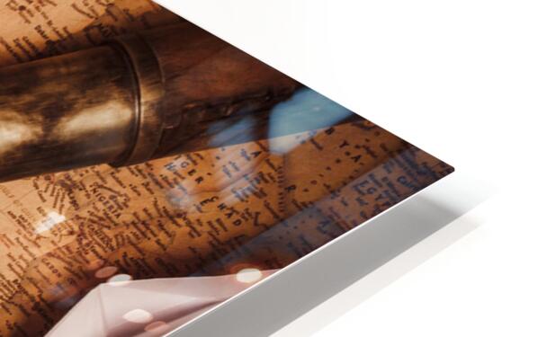 Explorer desk with compass map and spyglass Picture Frame Printing