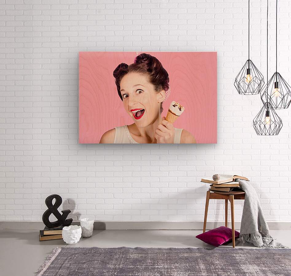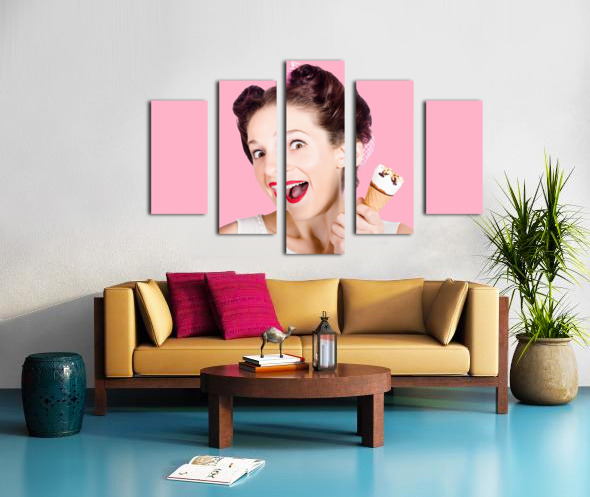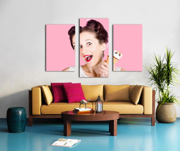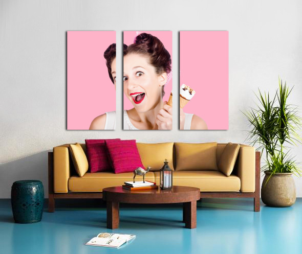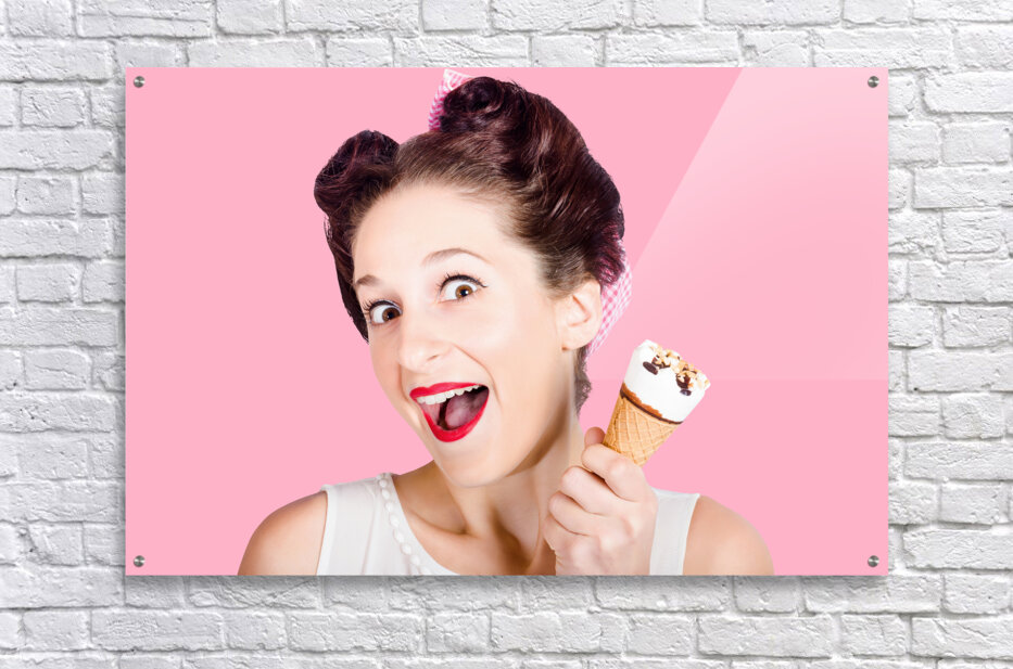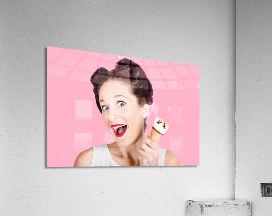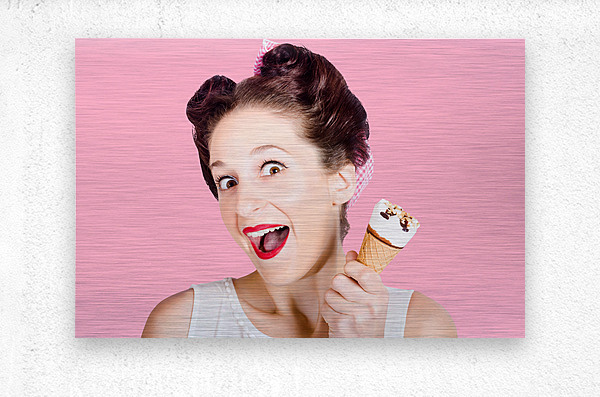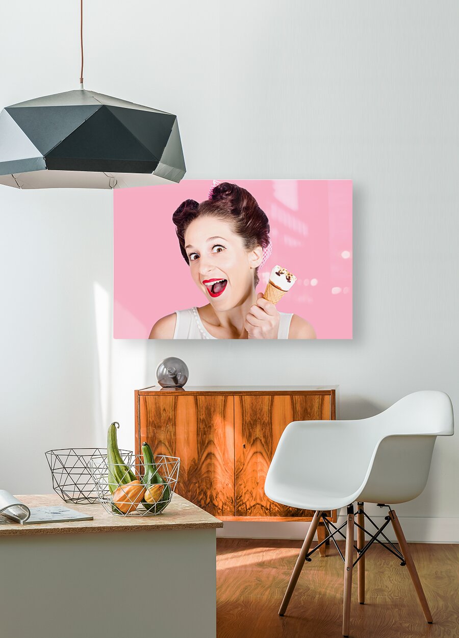 ABOUT THIS ARTWORK: FUNNY PINUP GIRL WITH ICE CREAM IN ISOLATED STUDIO