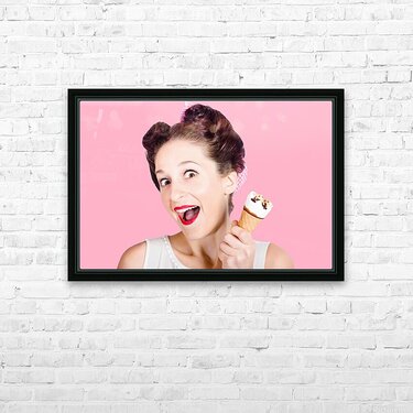 Funny pinup girl with ice cream in isolated studio Picture Frame Printing