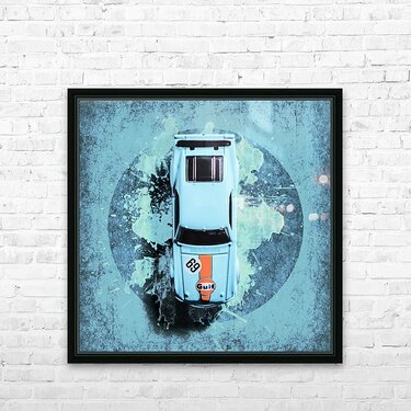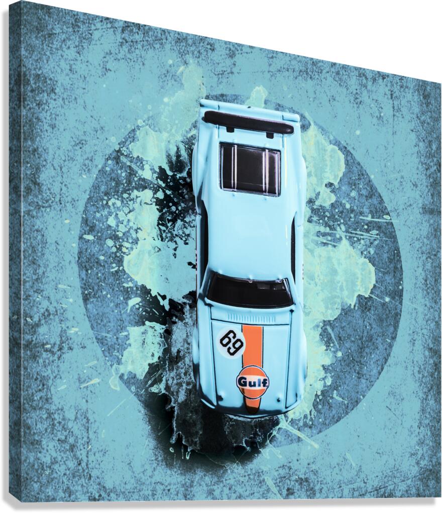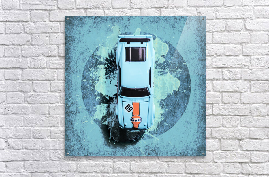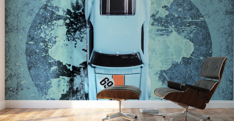Fine automobile art on a model 69 Ford Mustang Boss 302 in a creative spray of prototype painting. Like a boss