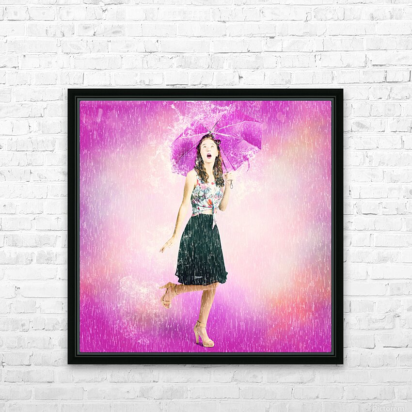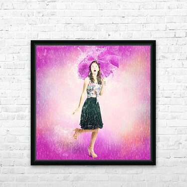 Pin-up girl in rain downfall. Hop skip and jump Frame print