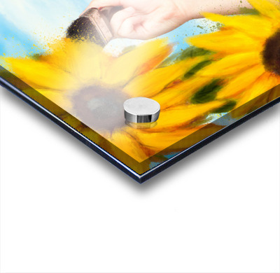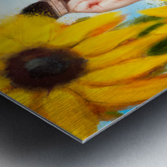 Female artist drawing sun flowers during summer Picture Frame Printing