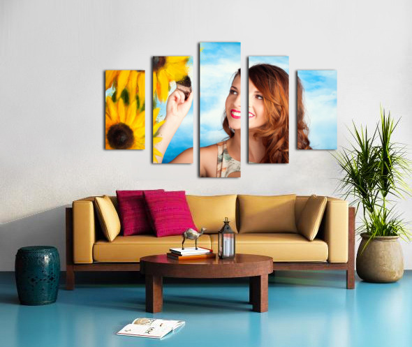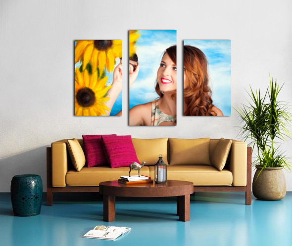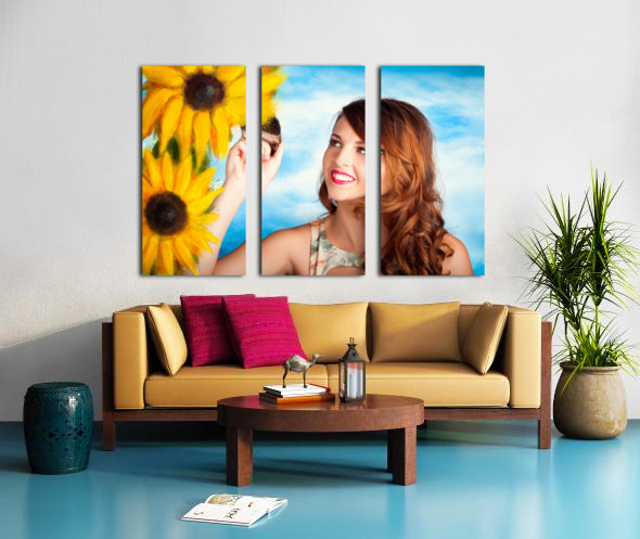 Female artist drawing sun flowers during summer Jorgo Puzzle printing