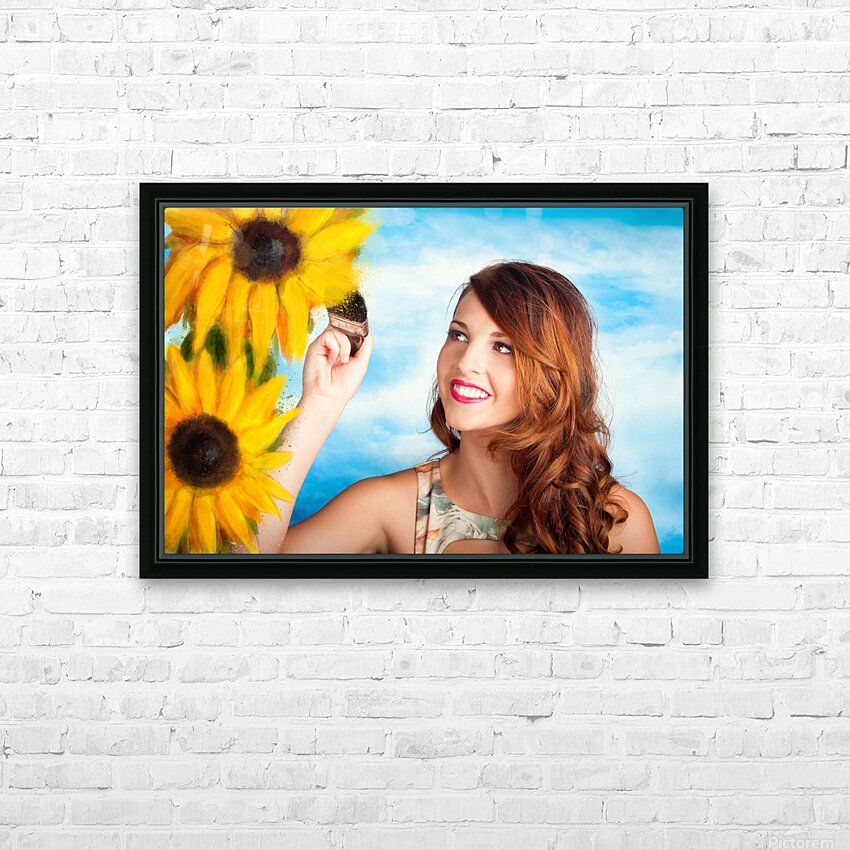 Female artist drawing sun flowers during summer Frame print