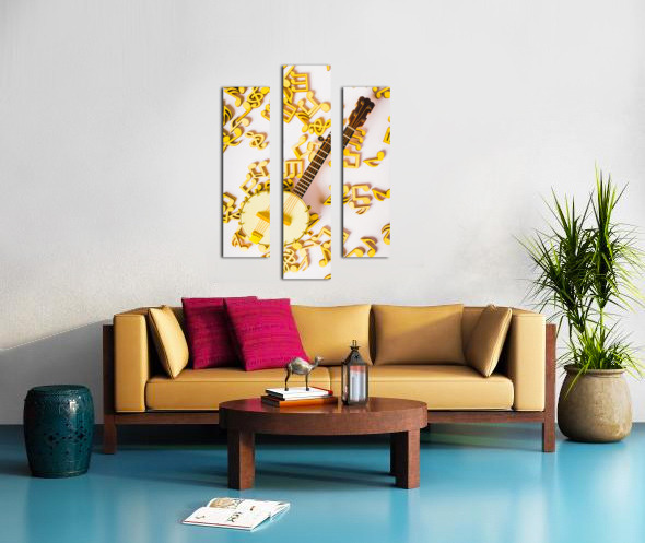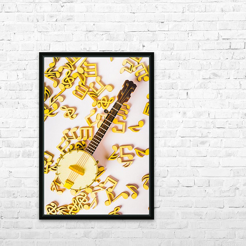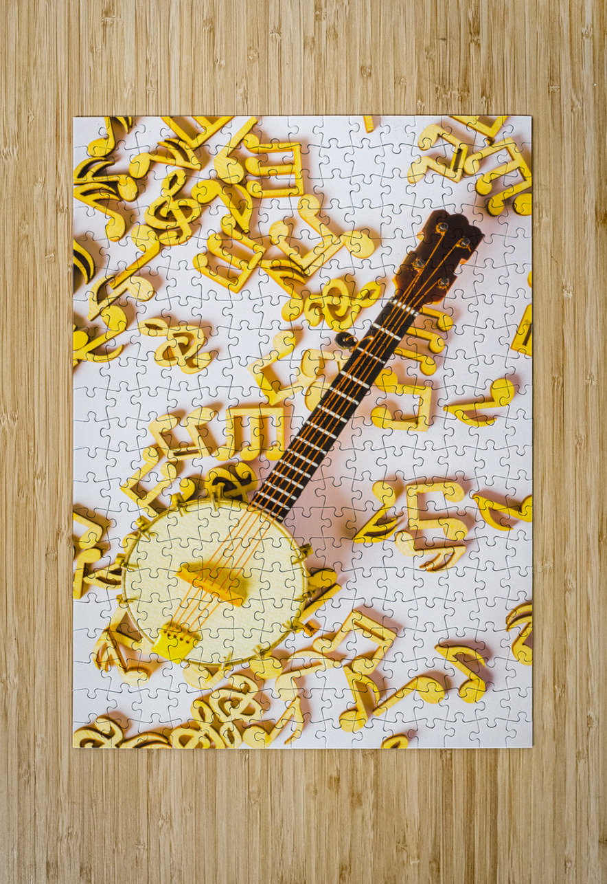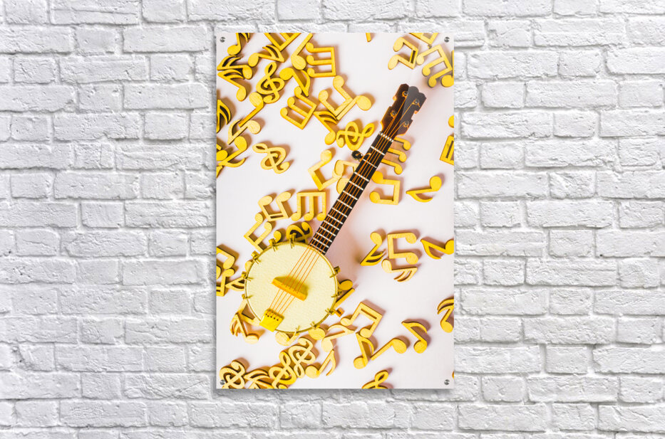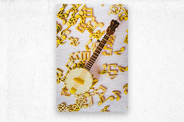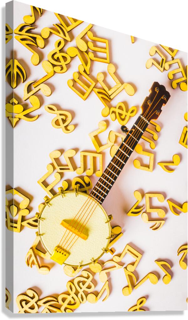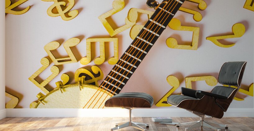 Fun scene of live music melody with a band banjo abstracting the notations of audio creativity