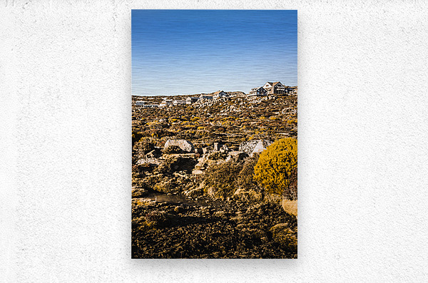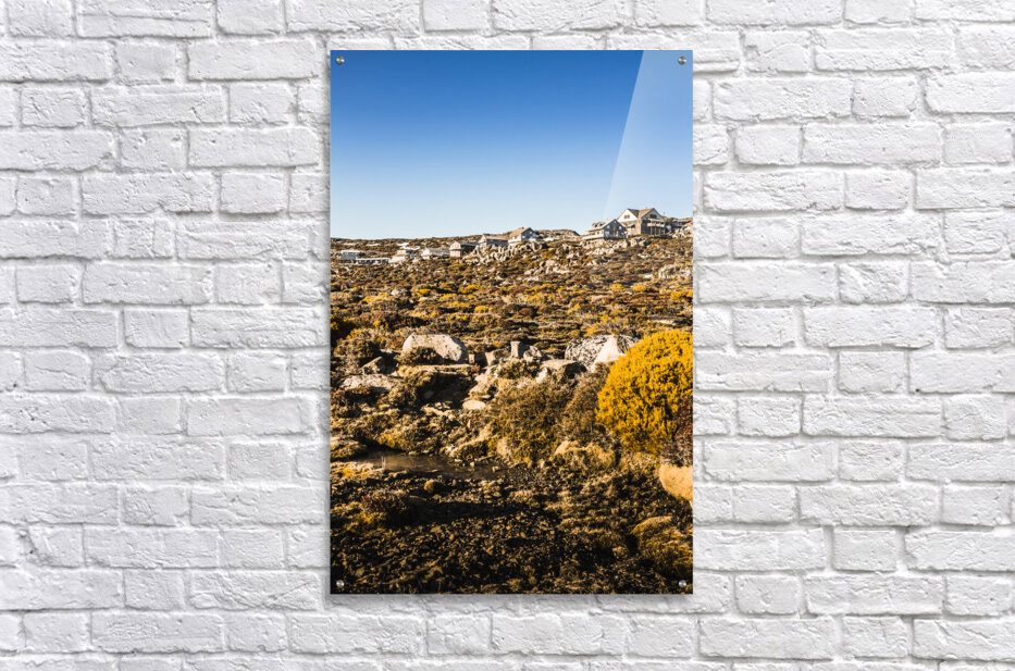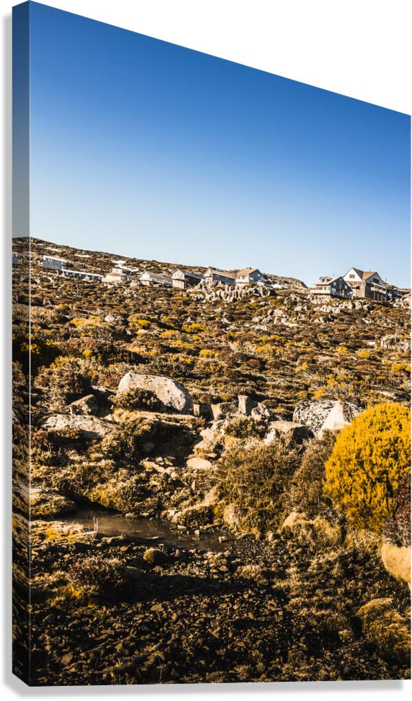 Rural Australian landscape on a rugged mountain town of ski villas taken in scenic spring. Ben Lomond National Park Tasmania Australia