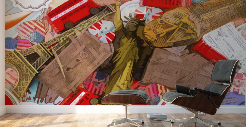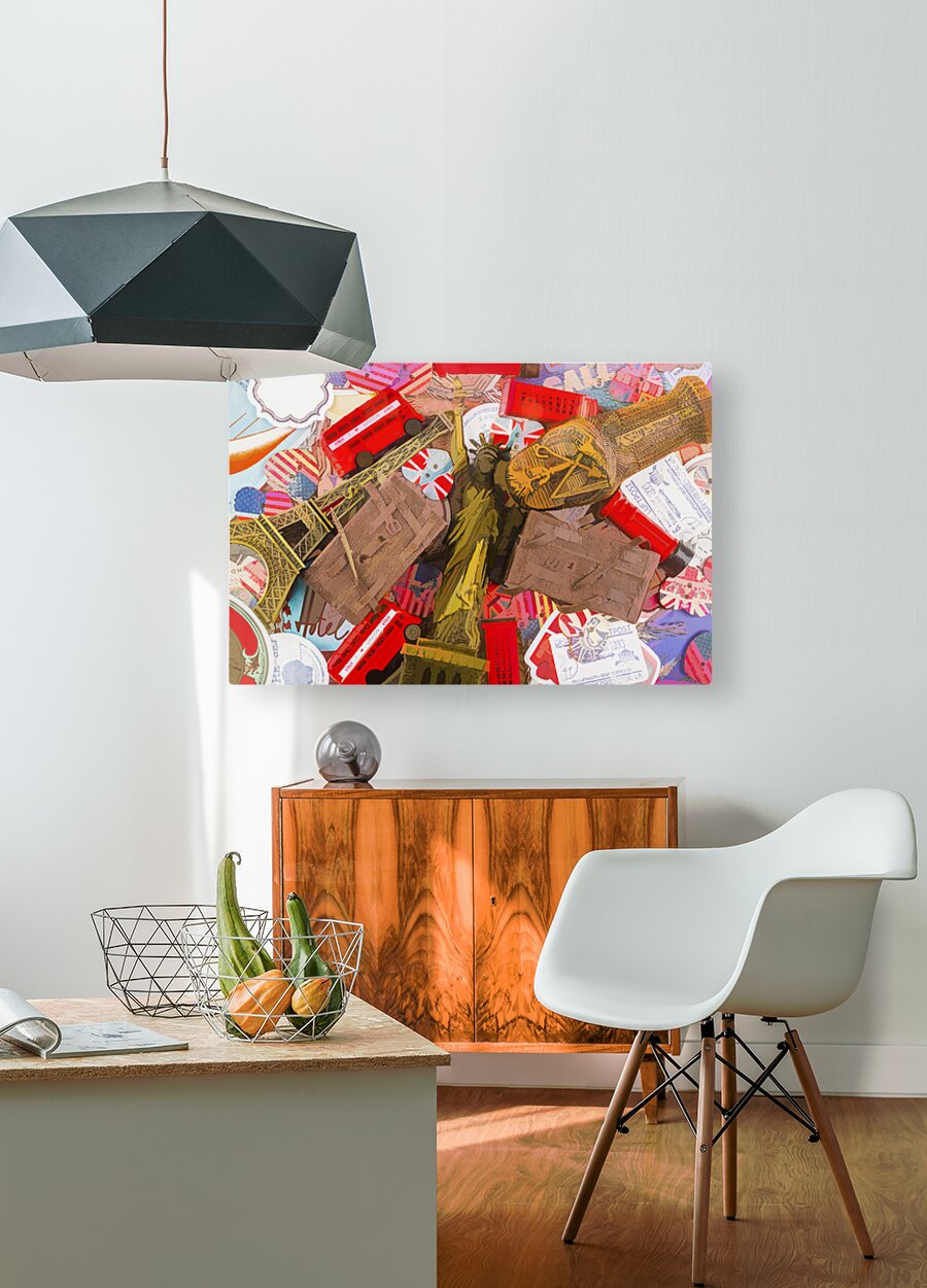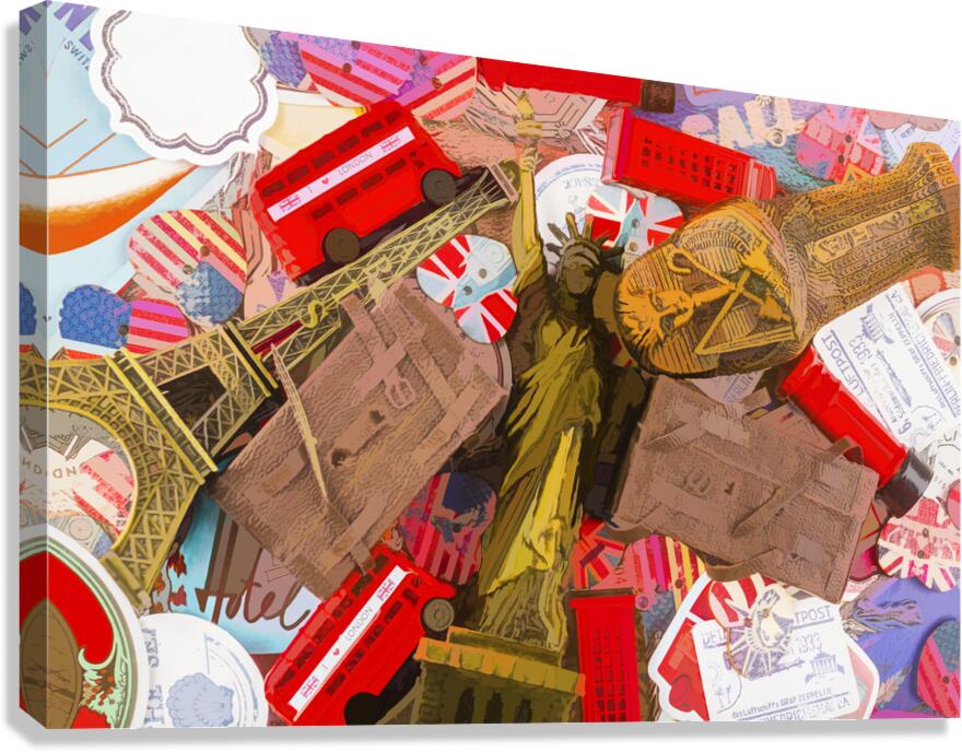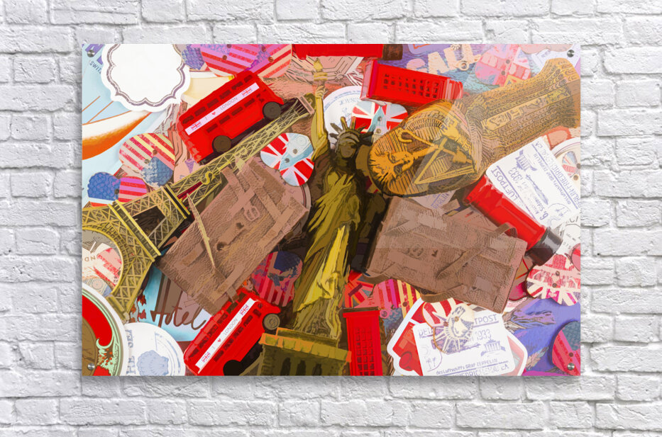A visual voyage into travelling delights with statues souvenirs and icons from past painted journeys