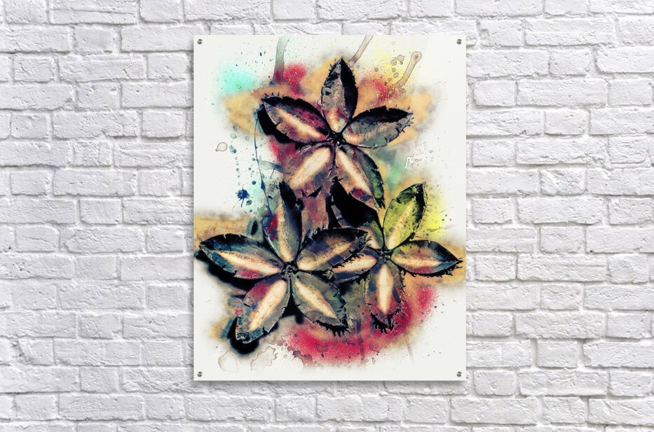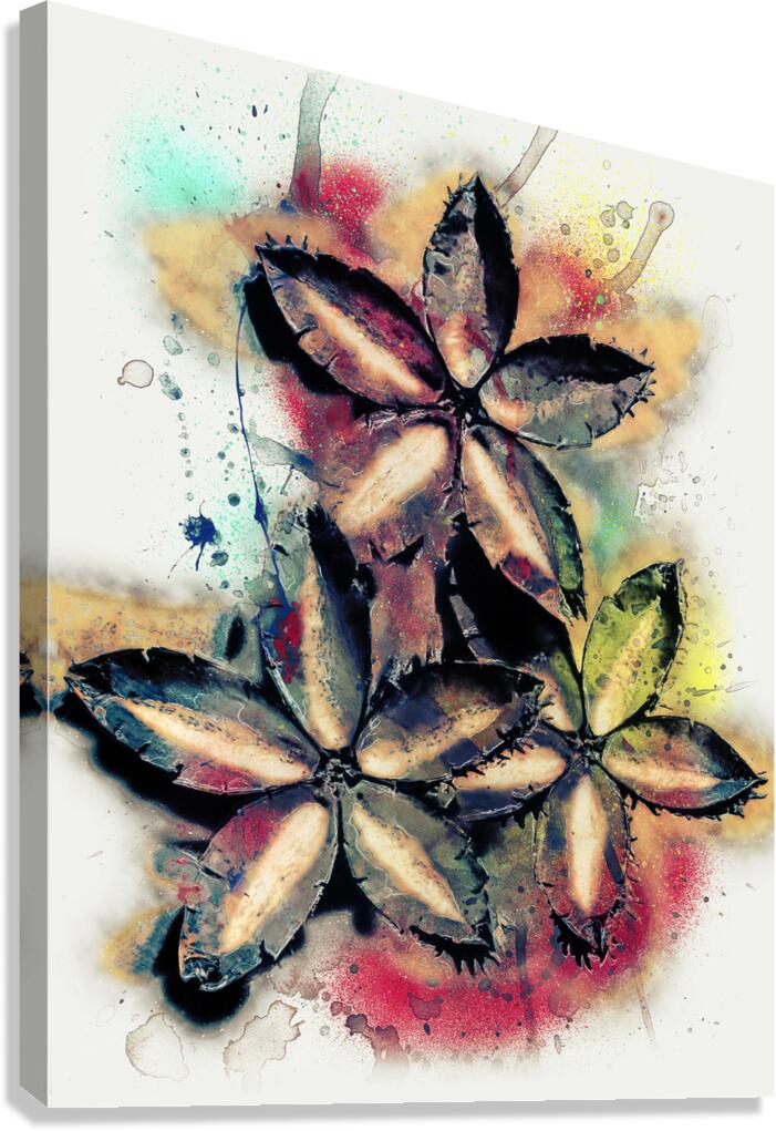 Creative scene in native Australian flora with a bunch of Flindersia flower esque seed pods in creative abstract splash