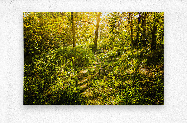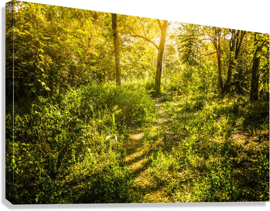 Landscape photo on a wandering trail leading though a mystical spring forest in golden afternoon sunlight. Captured: Murrumba Down Queensland Australia