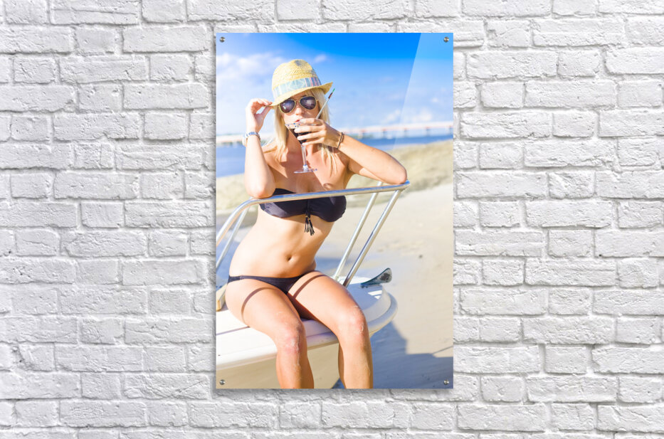 Irresistible Traveling Woman On Vacation Drinking From Cocktail Glass While On A Tourist Travel Trip To A Summer Holiday In Beach Heaven Blue Sky Background