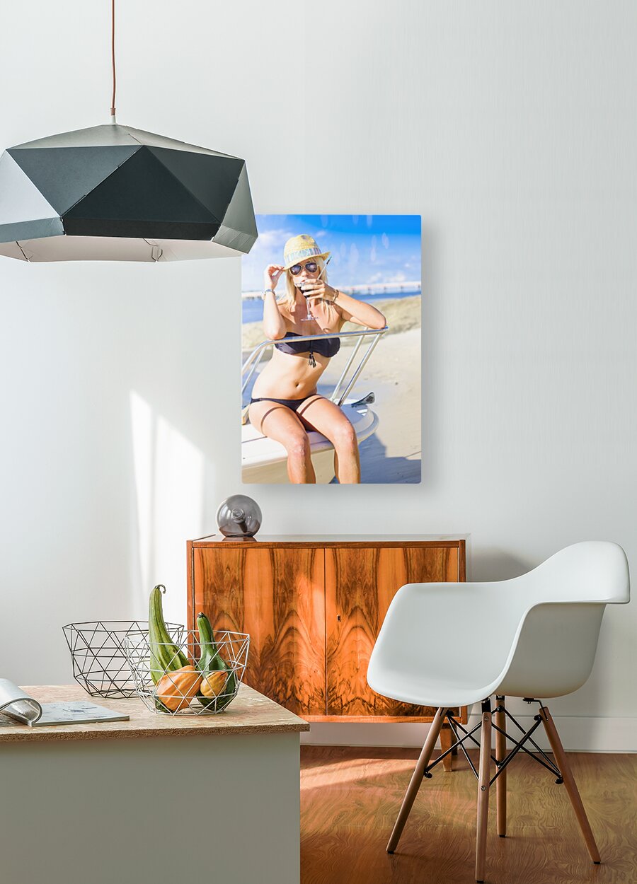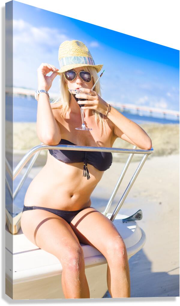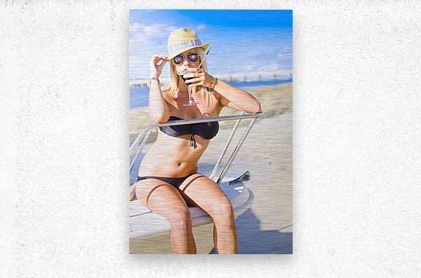 Irresistible Traveling Woman On Vacation Drinking From Cocktail Glass While On A Tourist Travel Trip To A Summer Holiday In Beach Heaven Blue Sky Back...[+]