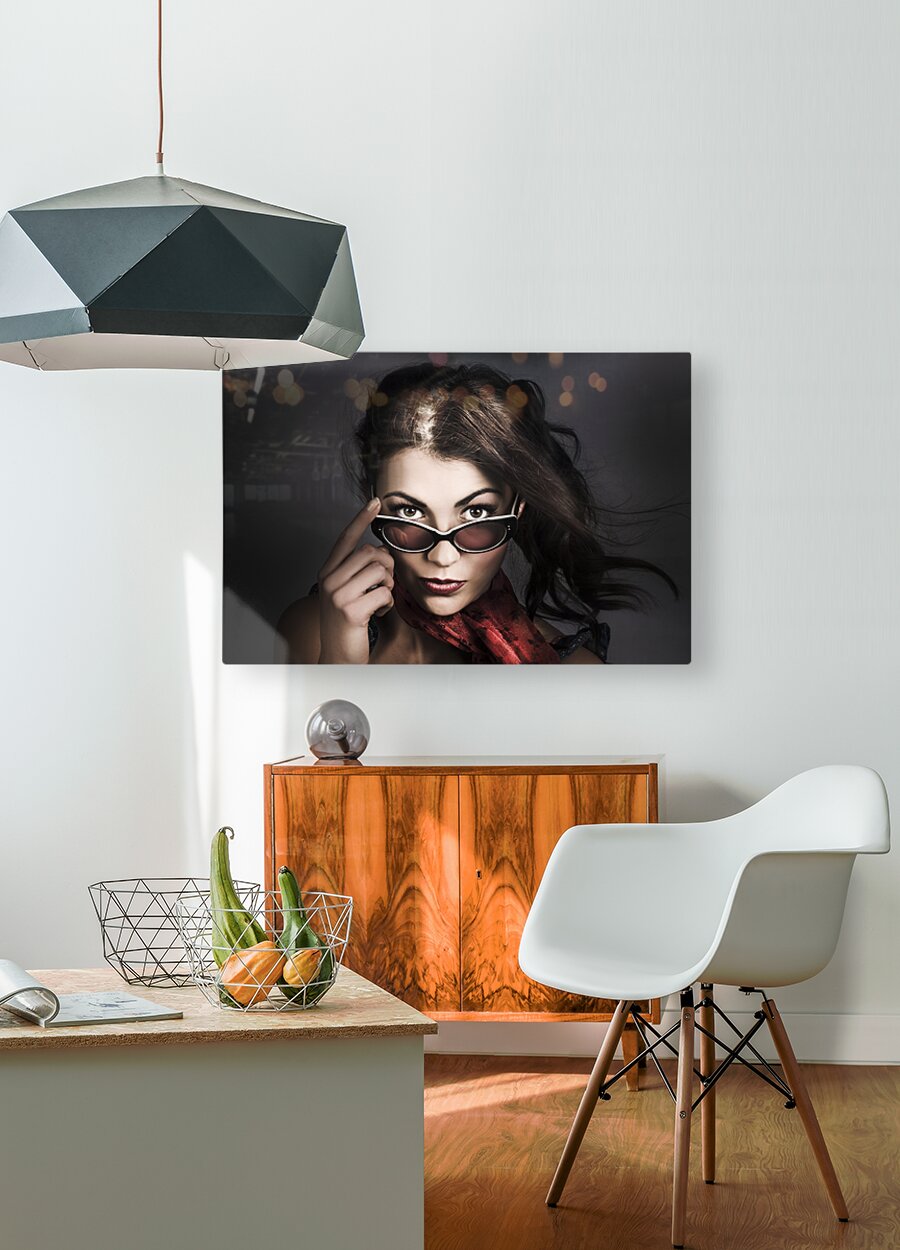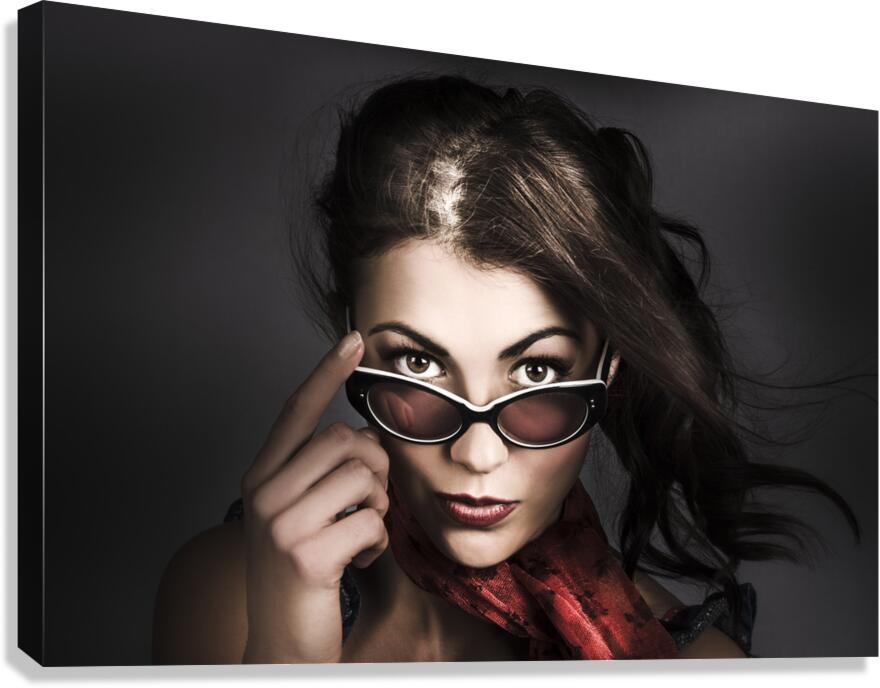 Beautiful pinup woman. Dark 50s fashion portrait Picture Frame Printing
