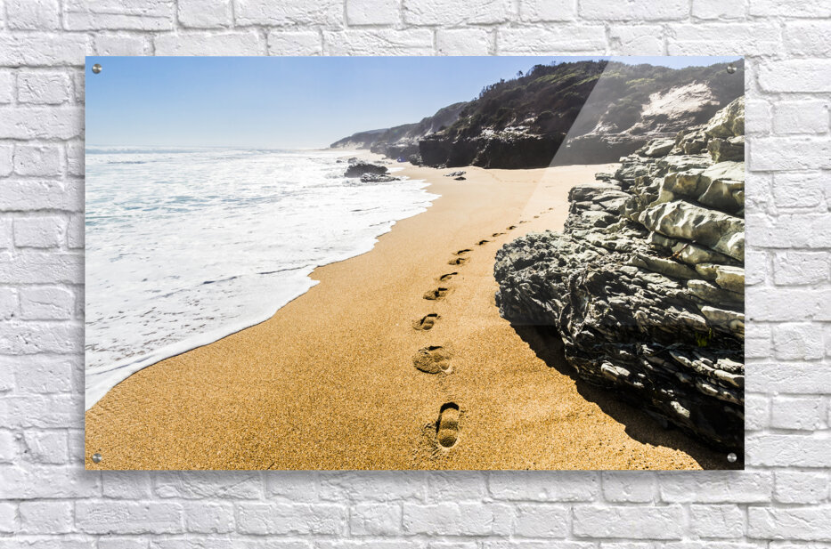 Calm coastline landscape on a step of foot tracks up a remote scenic beach. Trial Harbour Western Tasmania Australia