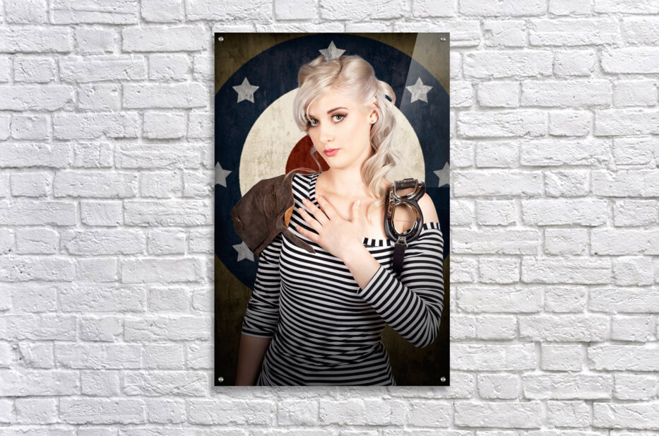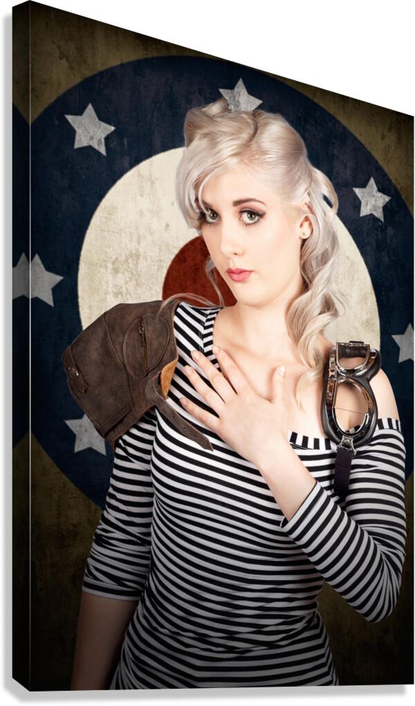 Military pin up woman taking airplane pilot oath Jorgo Puzzle printing